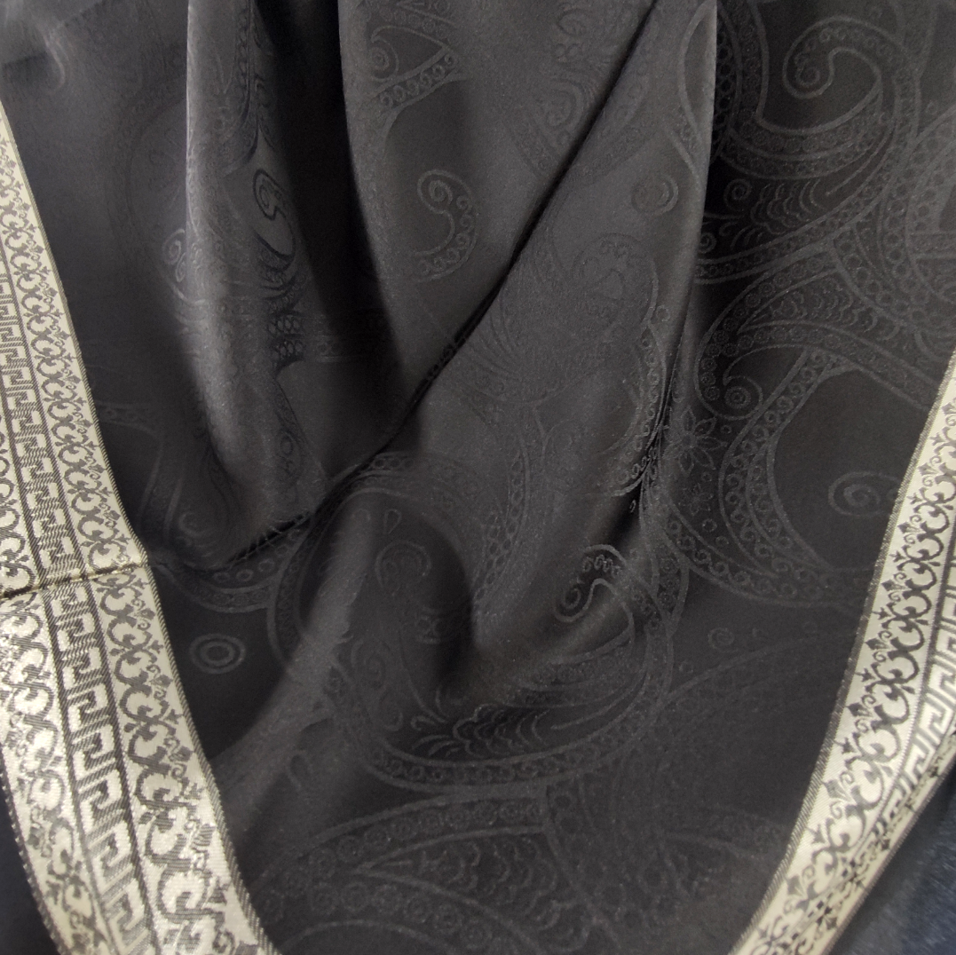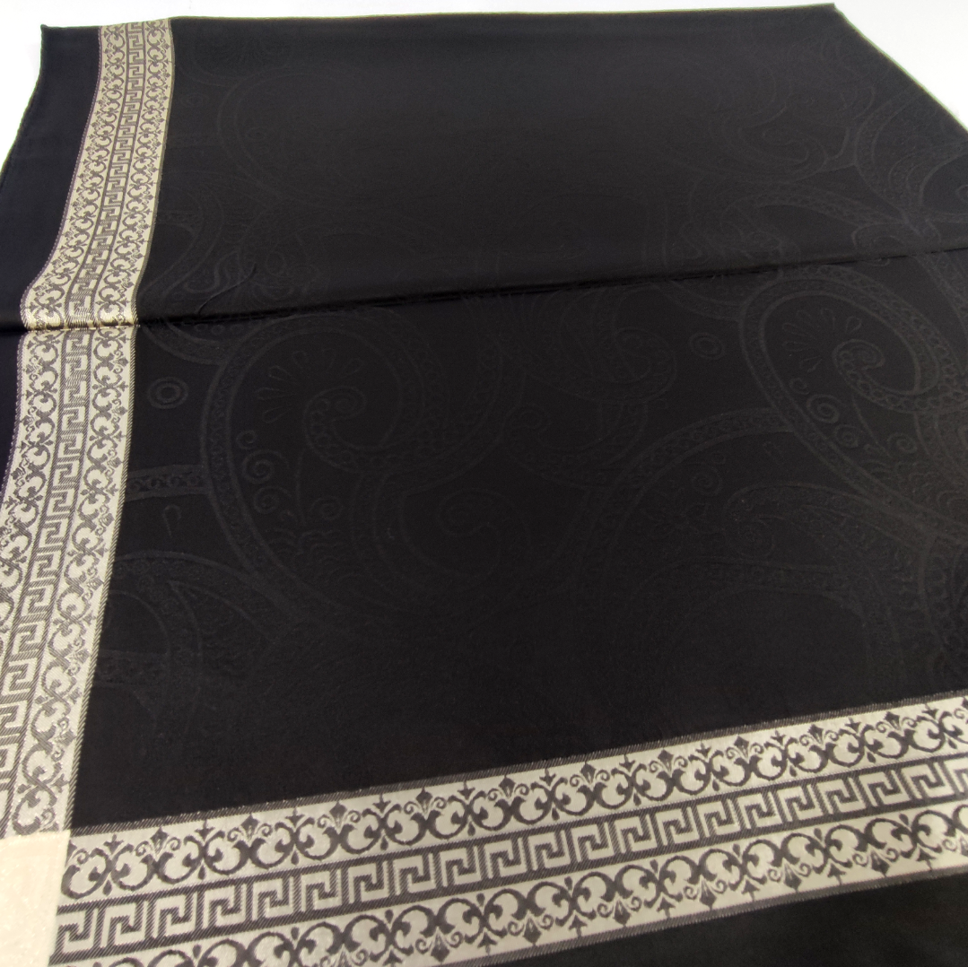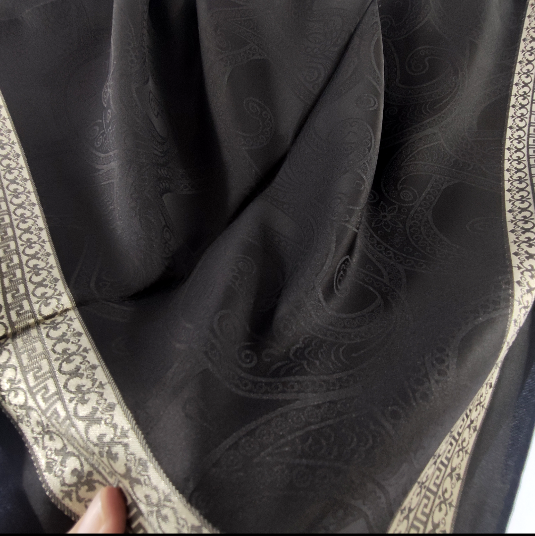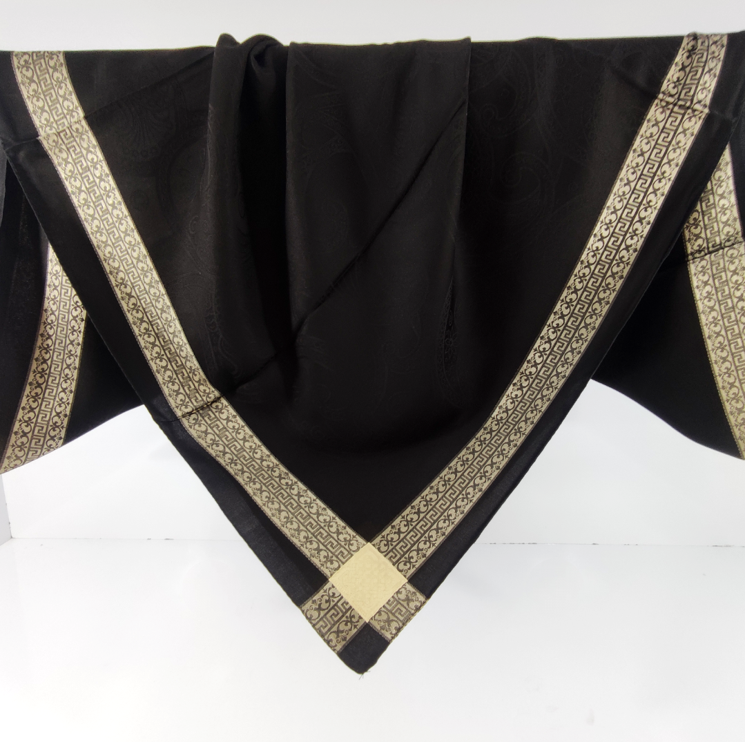 روسری مشکی نخ ژاکارد وارداتی ترک دور قاب طلایی قواره ۱۰۵ دور دوخت