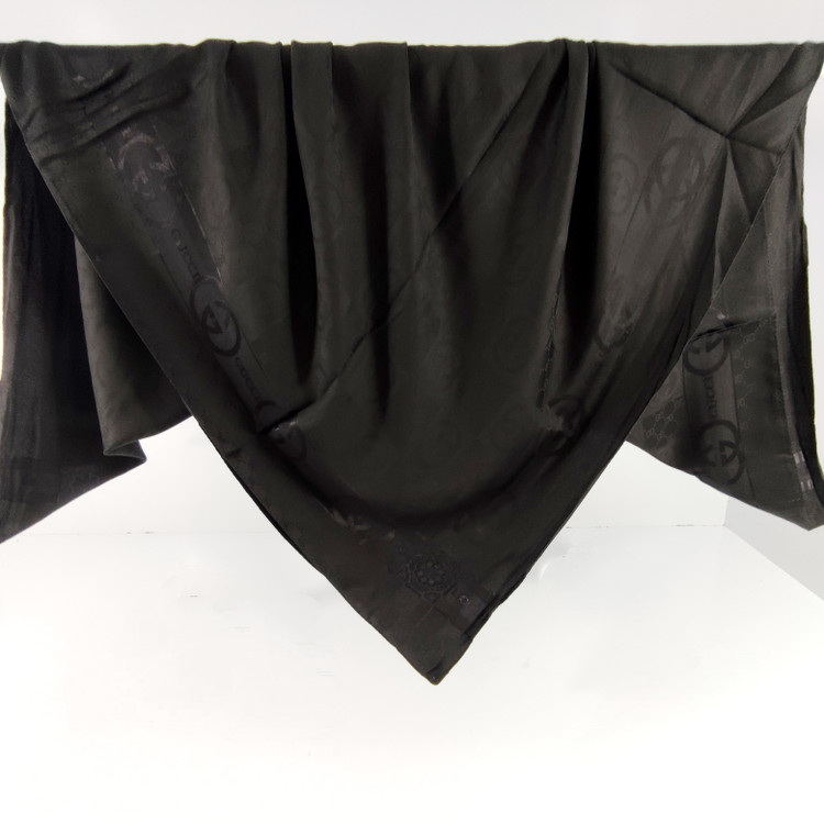 روسری مشکی مجلسی ابریشم ژاکارد ترک قواره ۱۲۵ دور دوخت