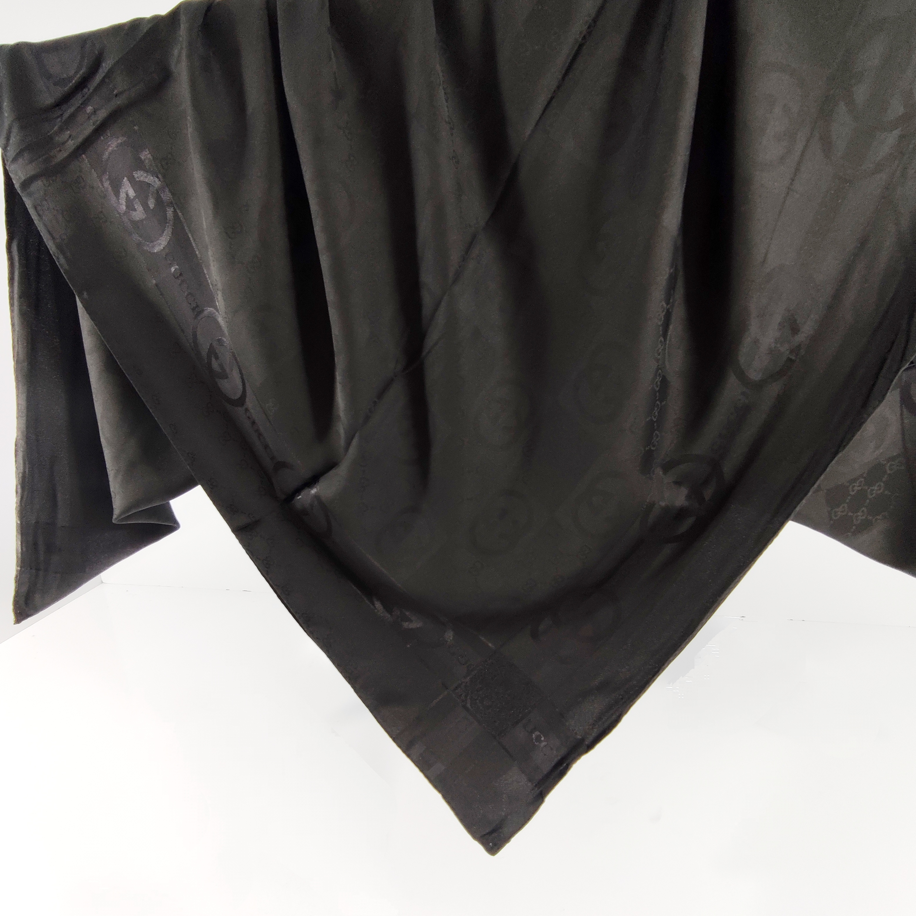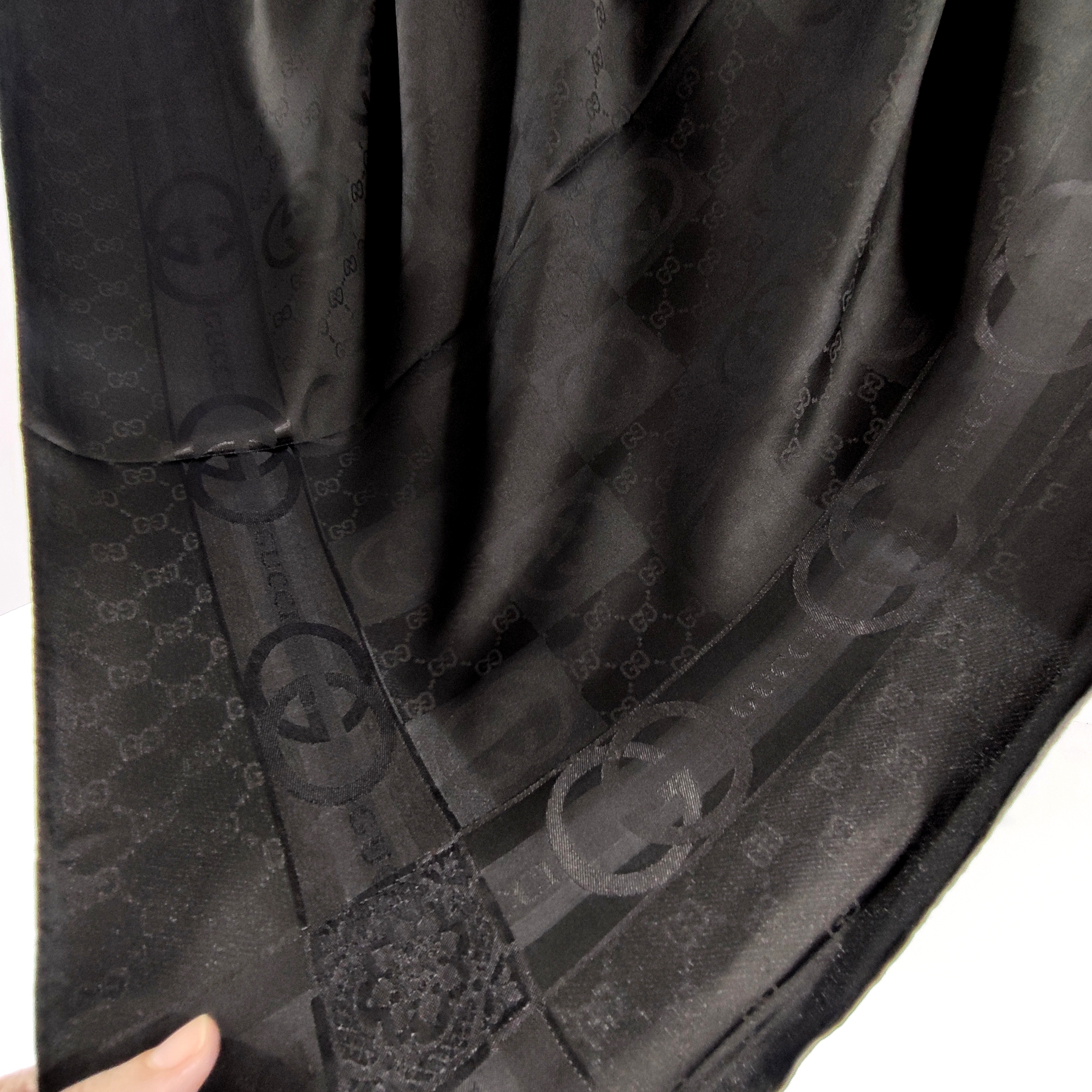 روسری مشکی مجلسی ابریشم ژاکارد ترک قواره ۱۲۵ دور دوخت