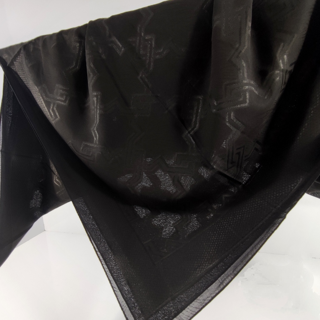 روسری مشکی ترک با قواره ۱۲۰ دور دوخت با ترکیب حریر و ژاکارد