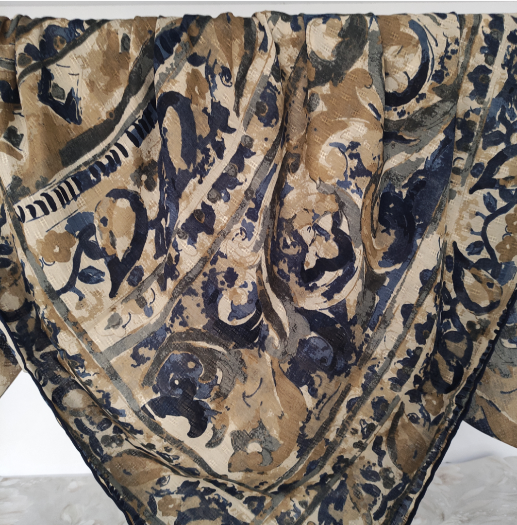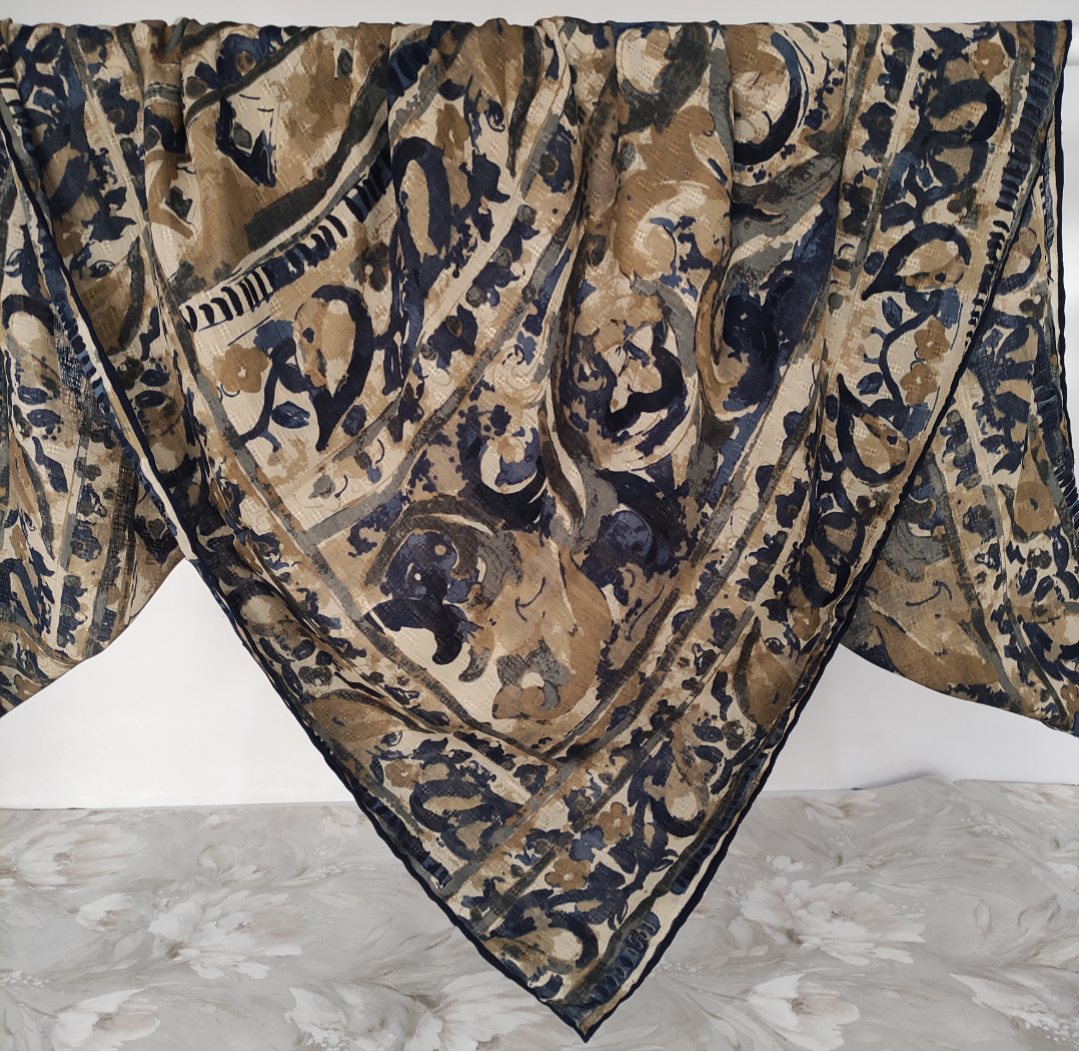 روسری بسیار زیبا طرح مخمل دور دستدوز با جنسش گارزا ژاکارد تابستانه بسیار لخت و سبک و راحت و خنک