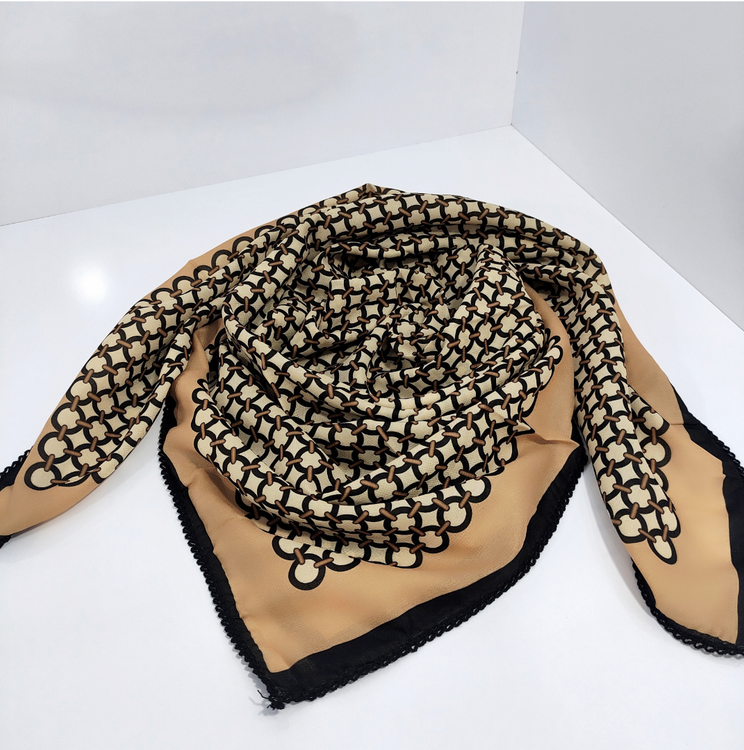 روسری نخ حریر دور دندان موشی قواره ۱۱۰ ایستایی عالی روی سر لیز نیست مناسب استفاده با گیره و یا گره زدن چروک نمیشه