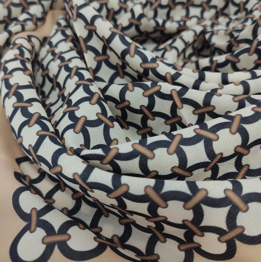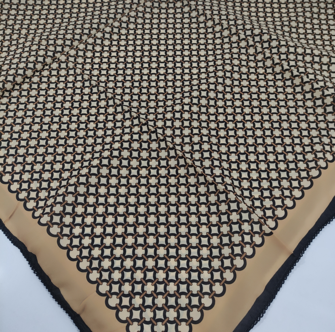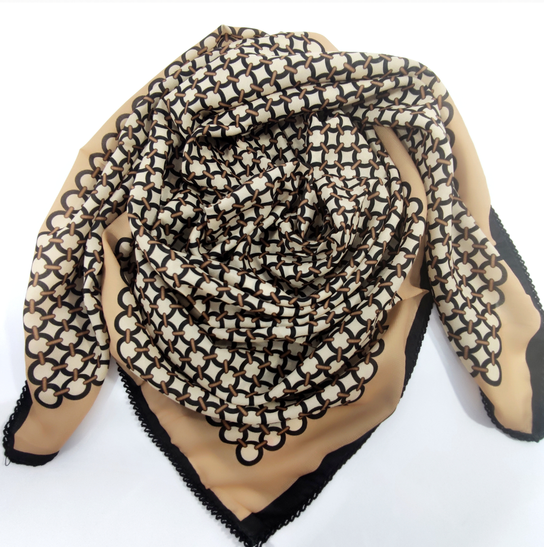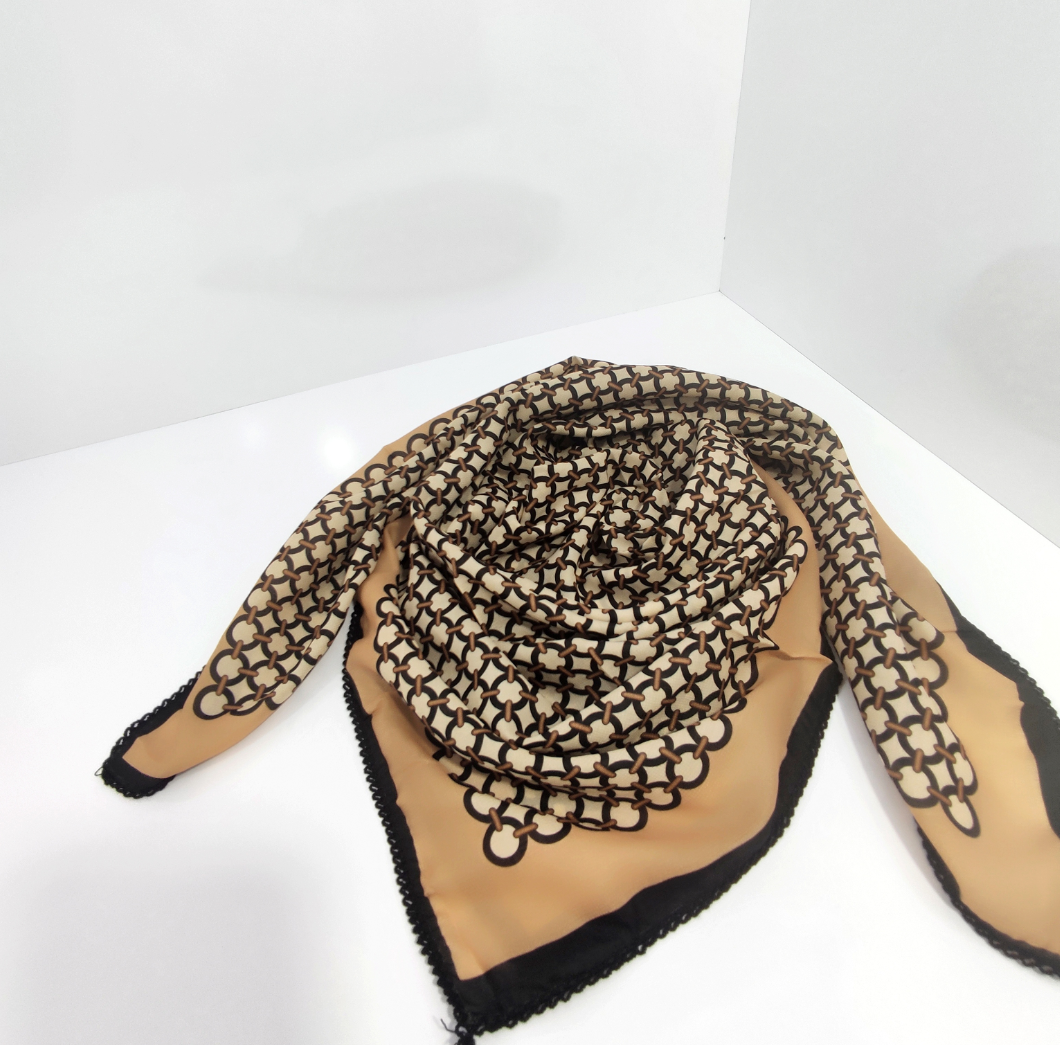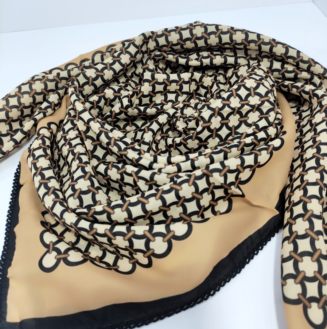 روسری نخ حریر دور دندان موشی قواره ۱۱۰ ایستایی عالی روی سر لیز نیست مناسب استفاده با گیره و یا گره زدن چروک نمیشه