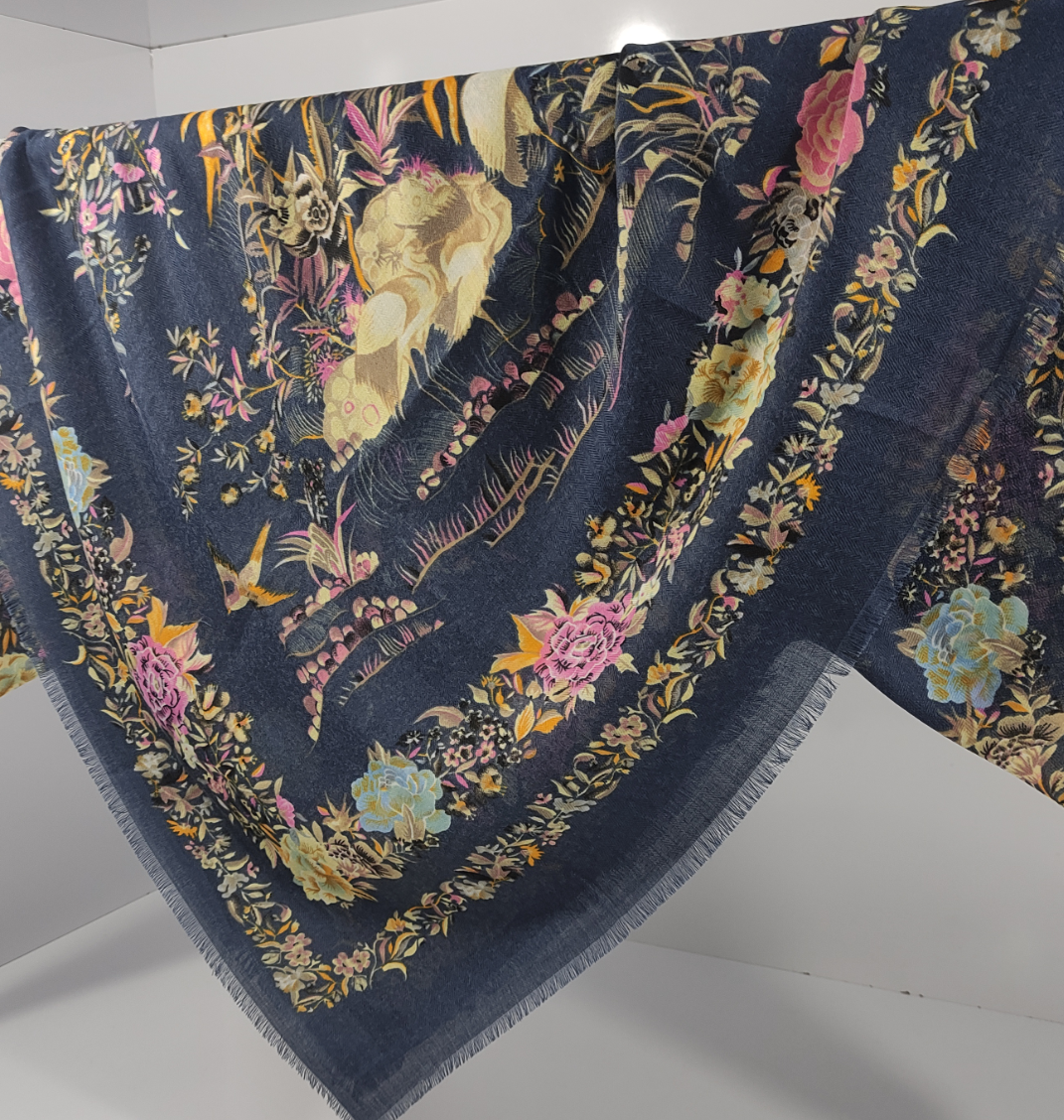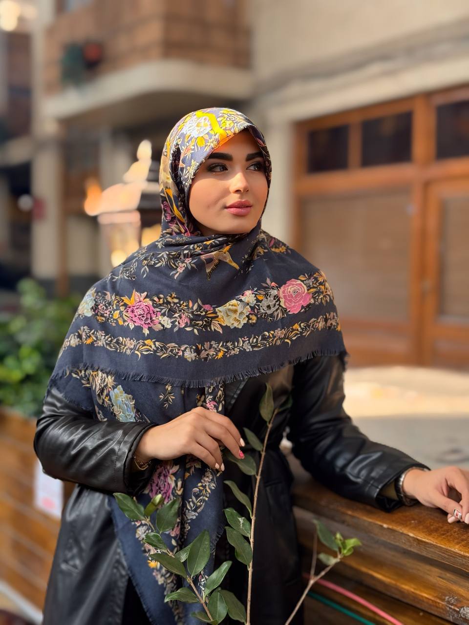 روسری نخ کشمیر وارداتی قواره ۱۲۵ دور ریش پاییزه