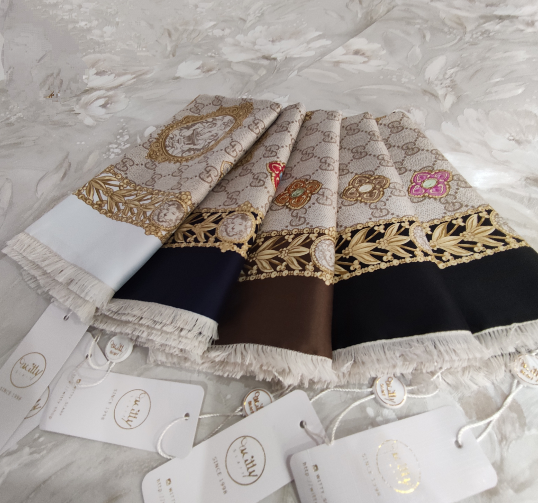 روسری ابریشم توئیل وارداتی قواره ۹۰ طرح گوچی