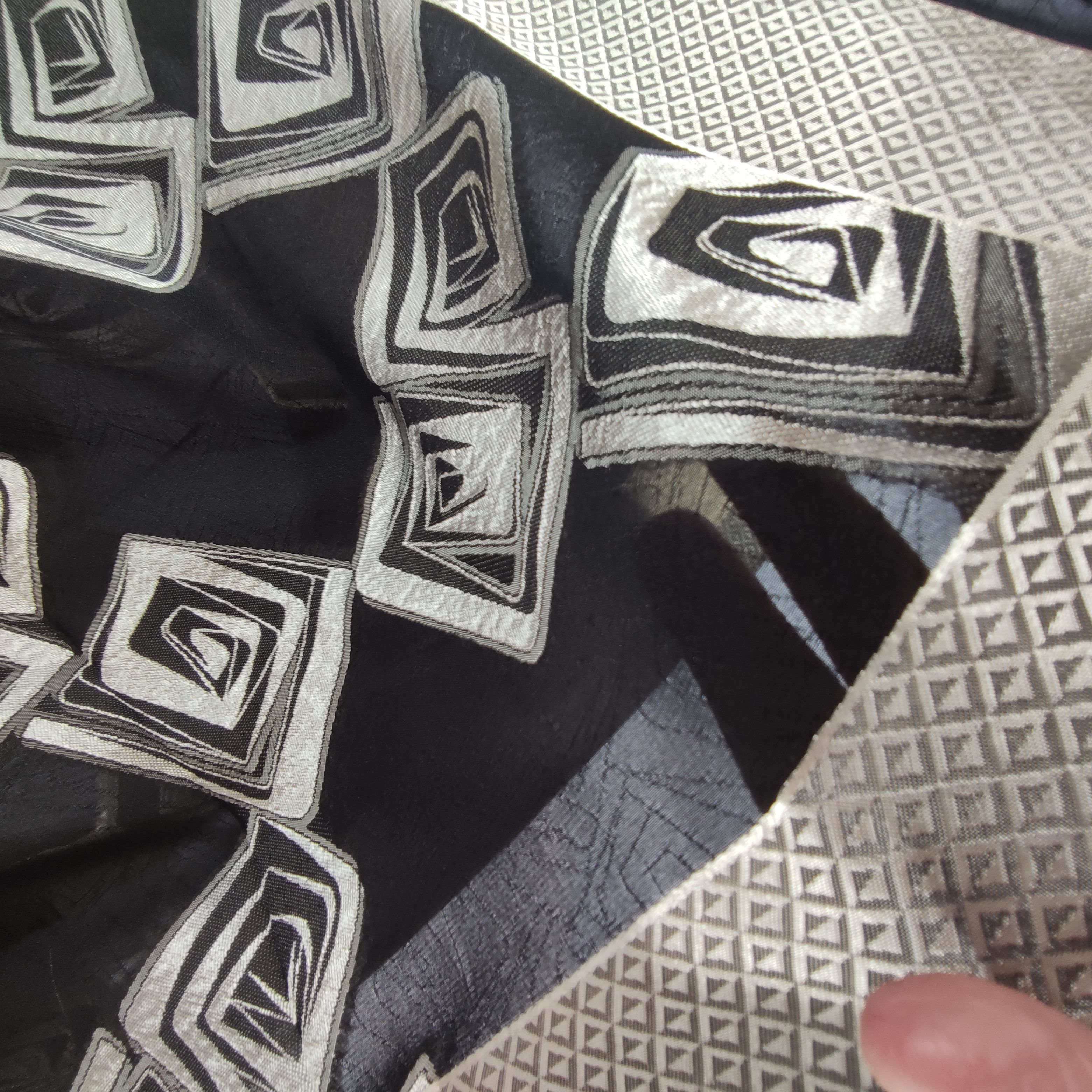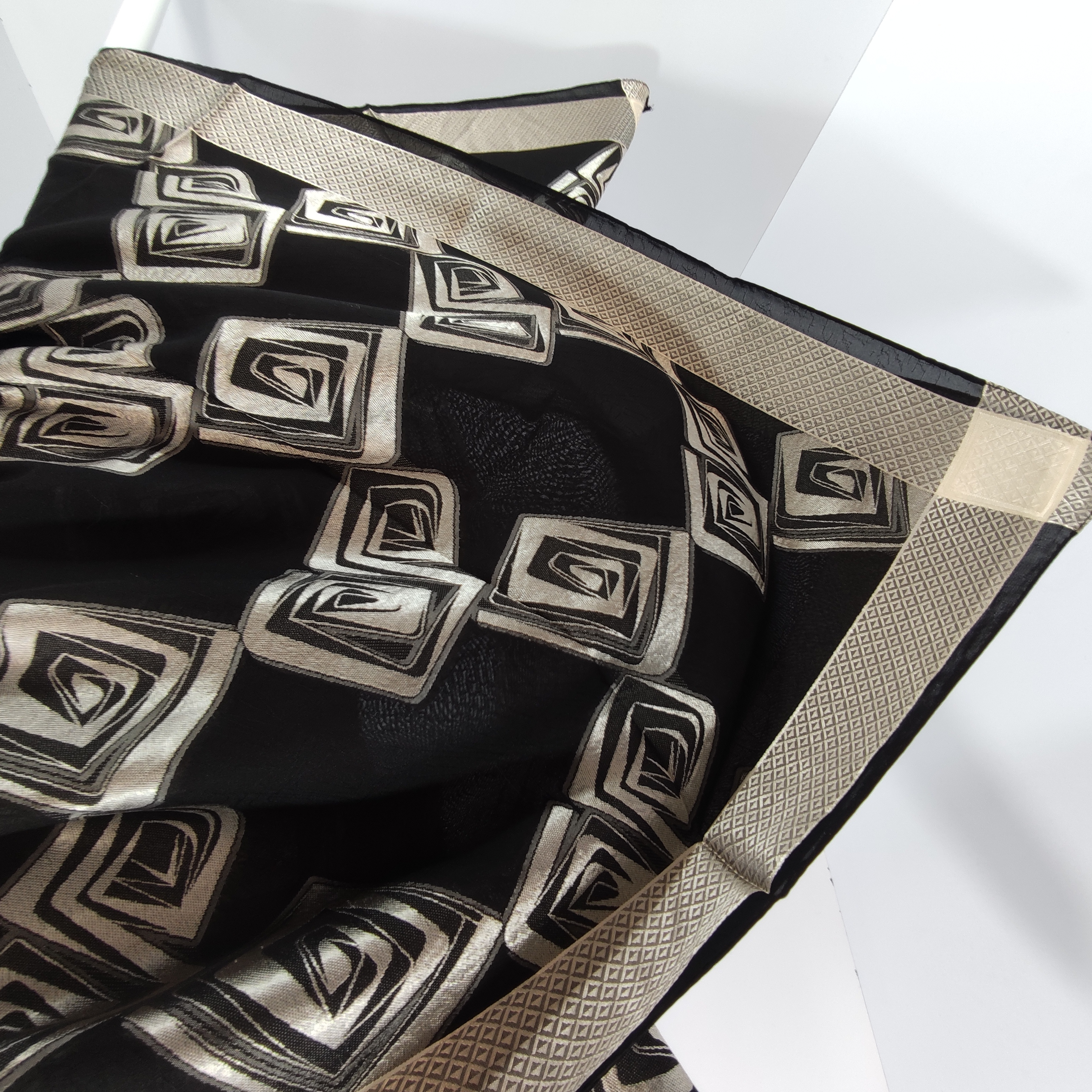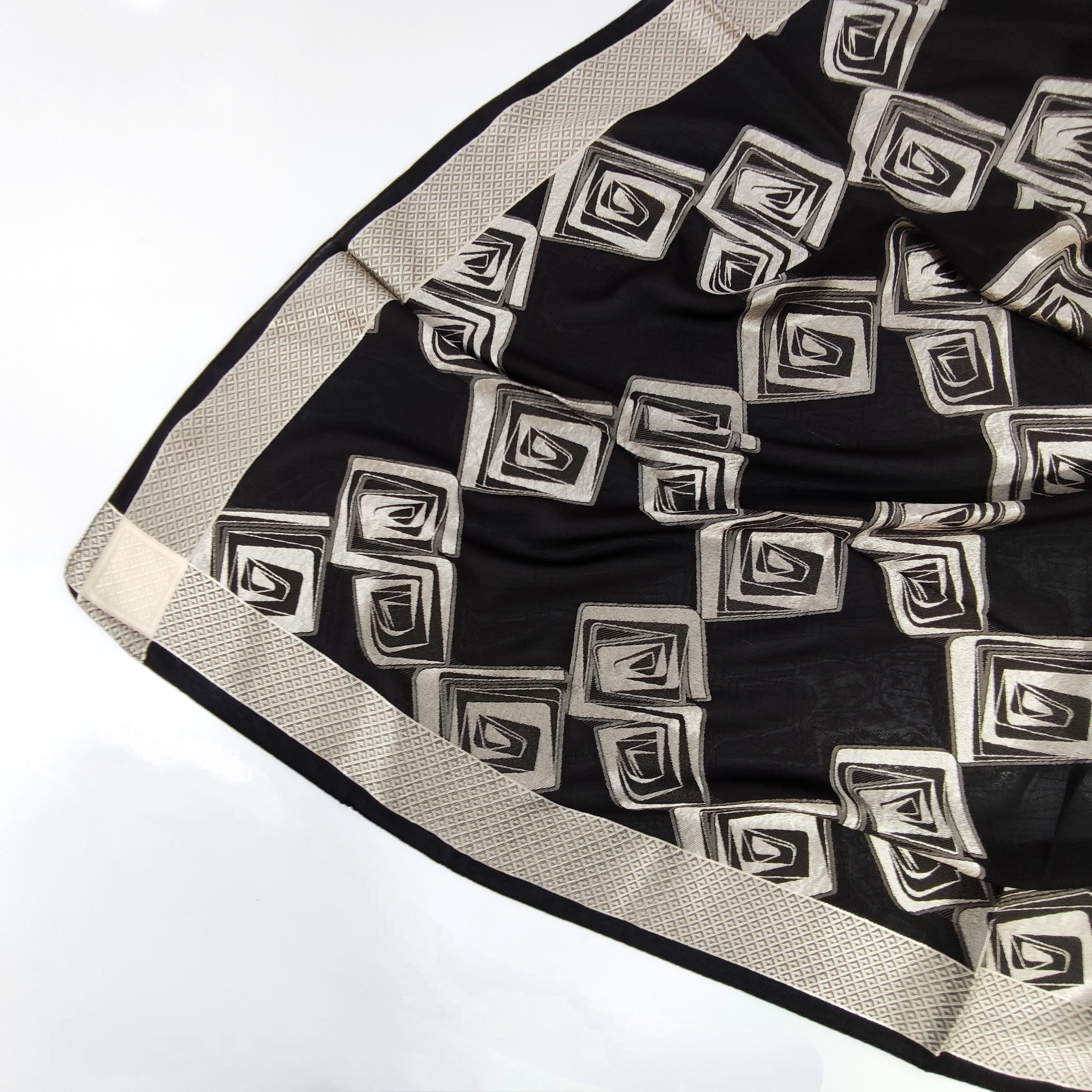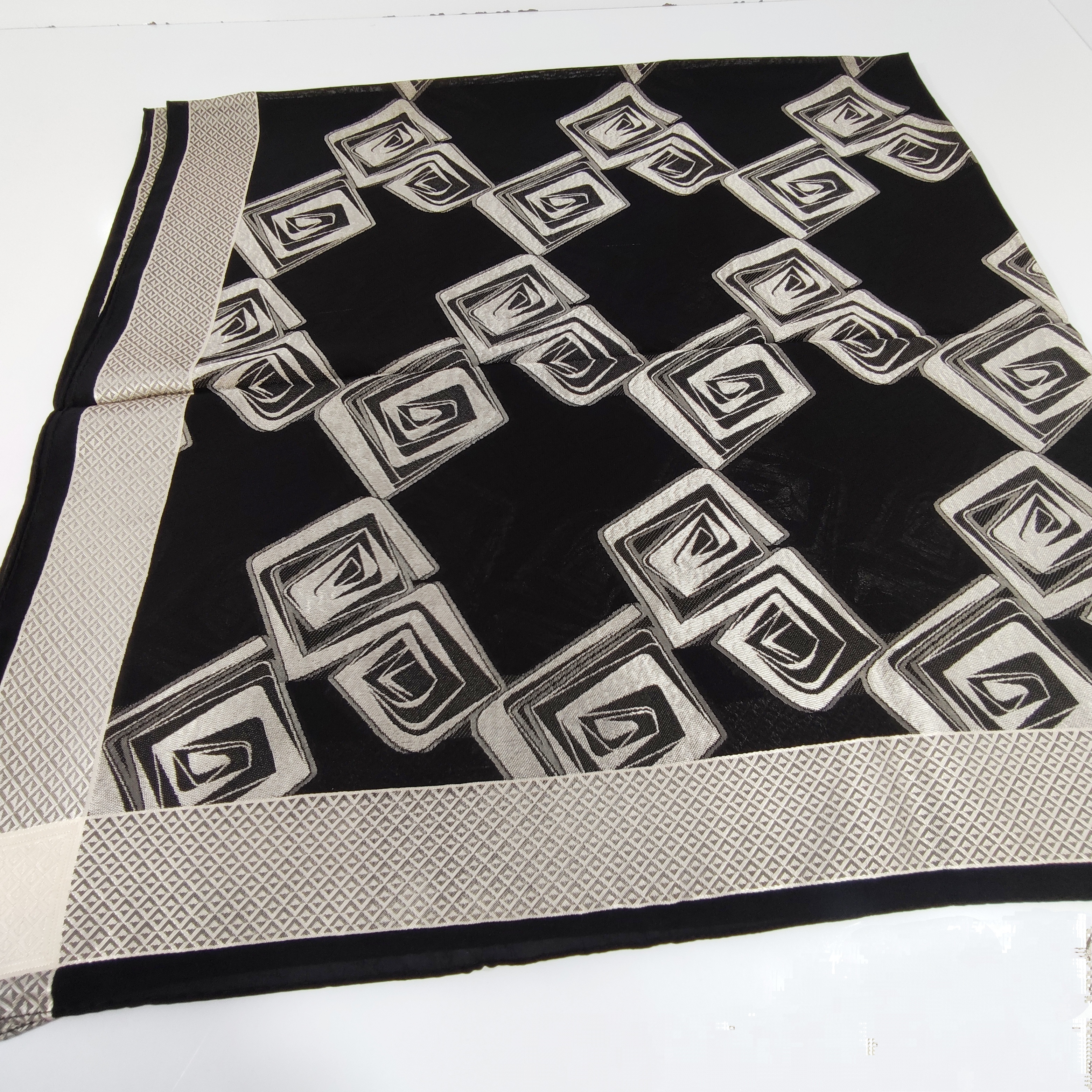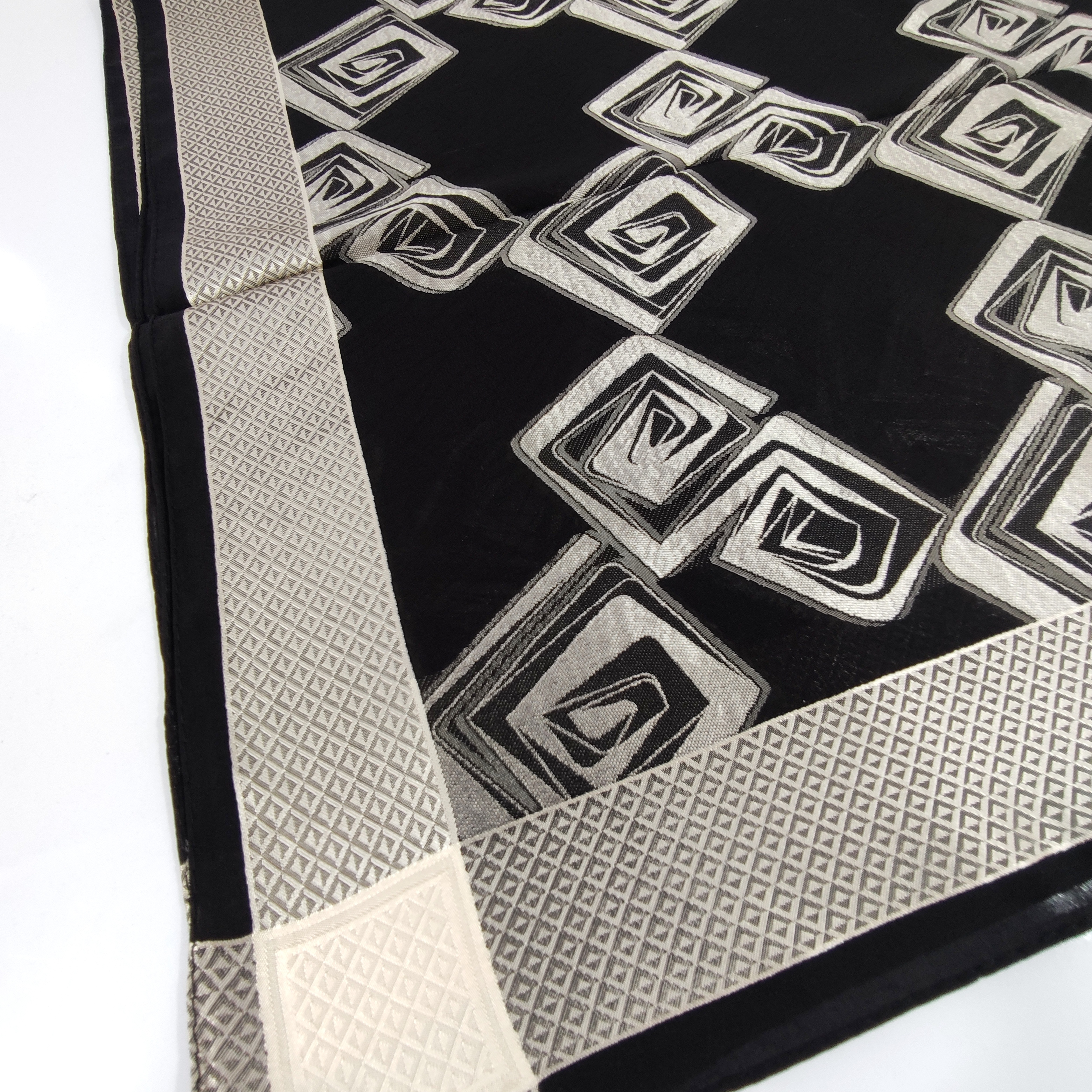 روسری مجلسی مشکی نخ حریر برجسته ترک قواره ۱۲۰ دور دوخت