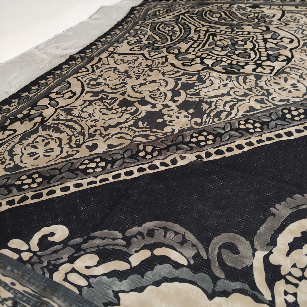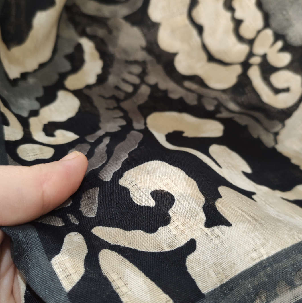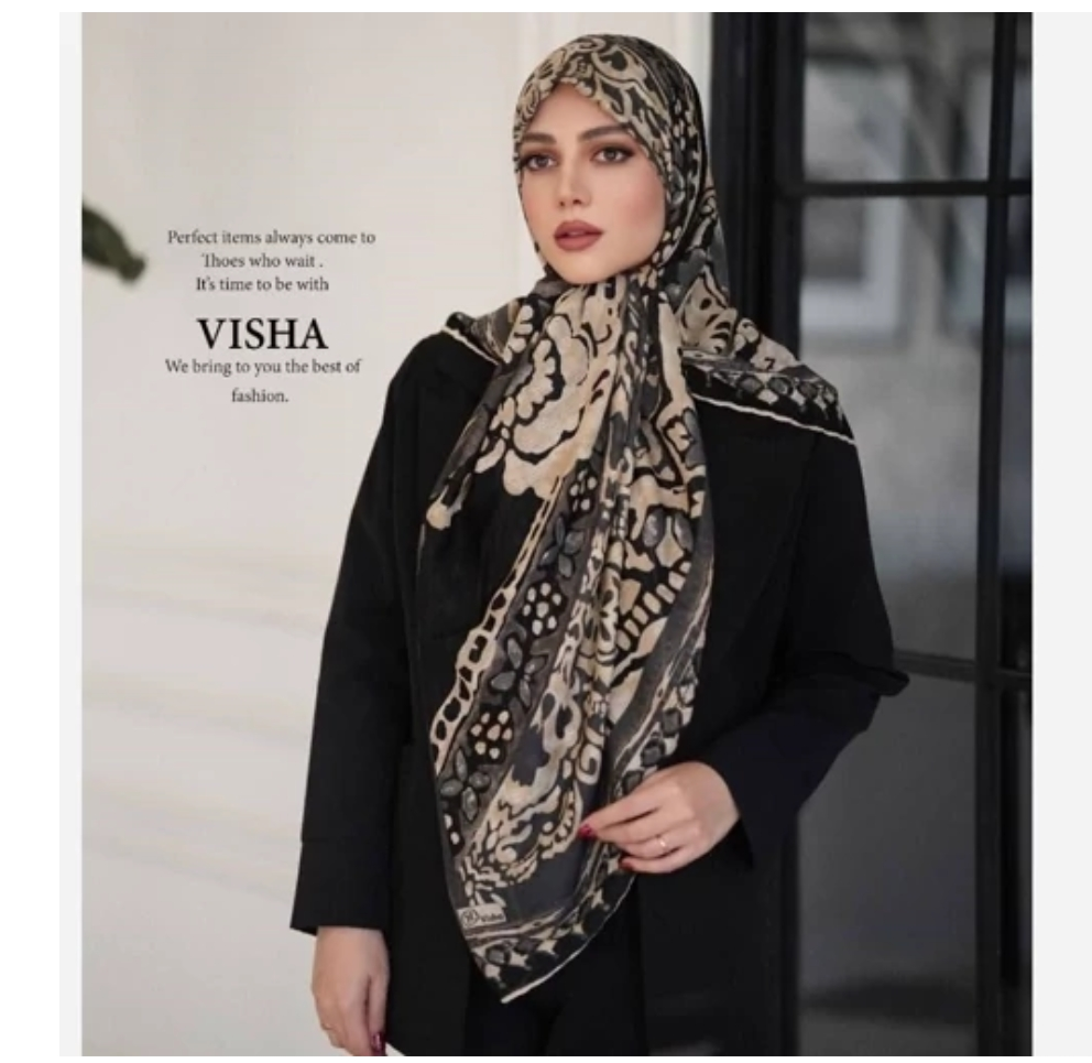 روسری بسیار زیبا طرح مخمل دور دستدوز با جنسش گارزا ژاکارد تابستانه بسیار لخت و سبک و راحت و خنک