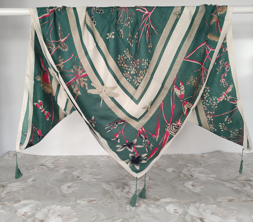 روسری نخی سیا اسکارف برند داخلی منگوله دار بسیار نرم و لطیف بسیار سبک و راحت مناسب استفاده روزمره واستایل خیابانی