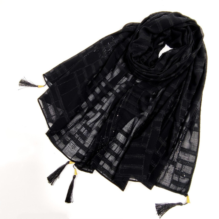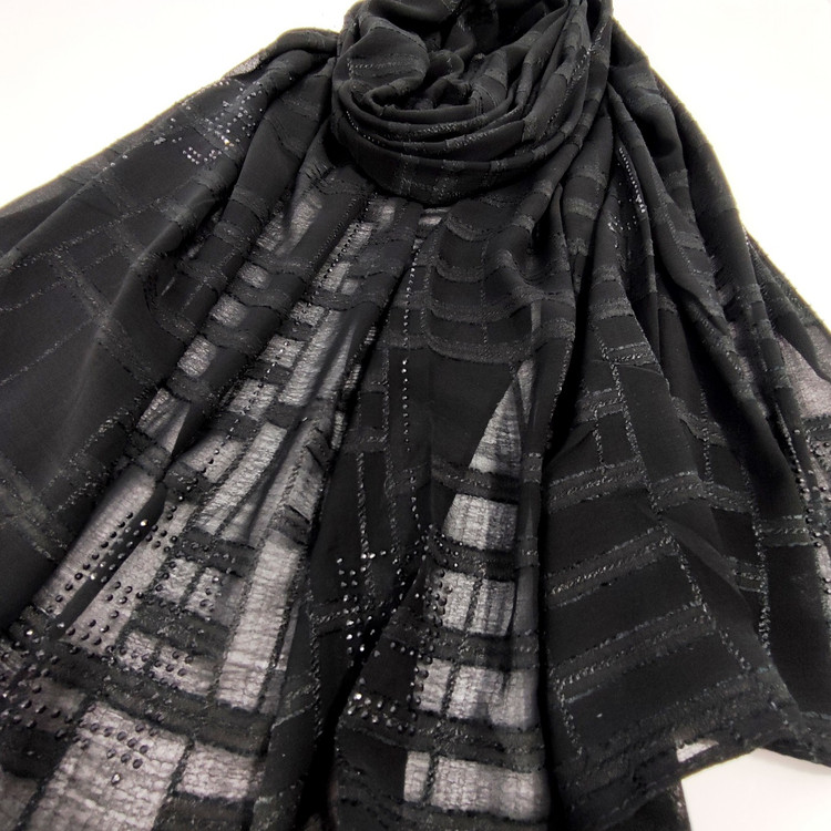 شال نخ حریر نگین دار ژورژت برند جیشون منگوله دار بسیار سبک و راحت و خنک که لیز نمیخورد و نگین هایش کنده نمیشه