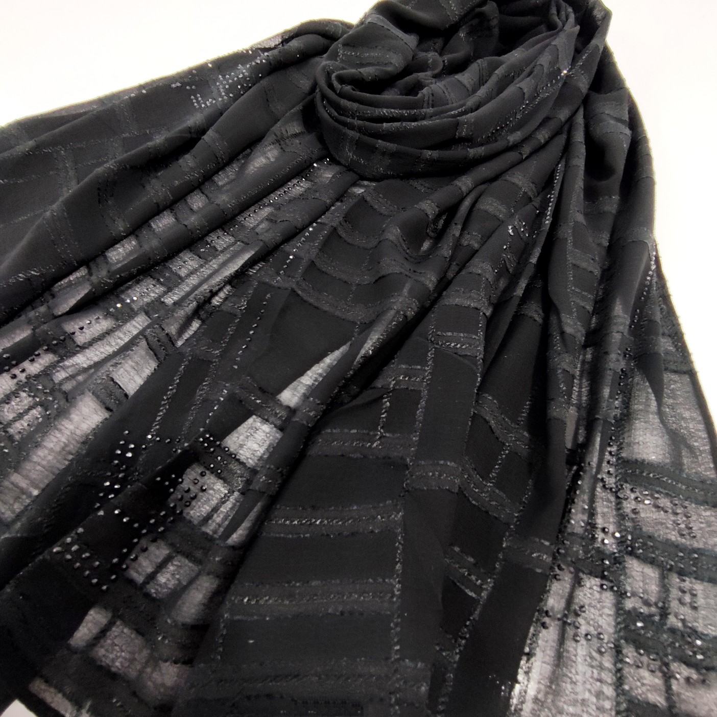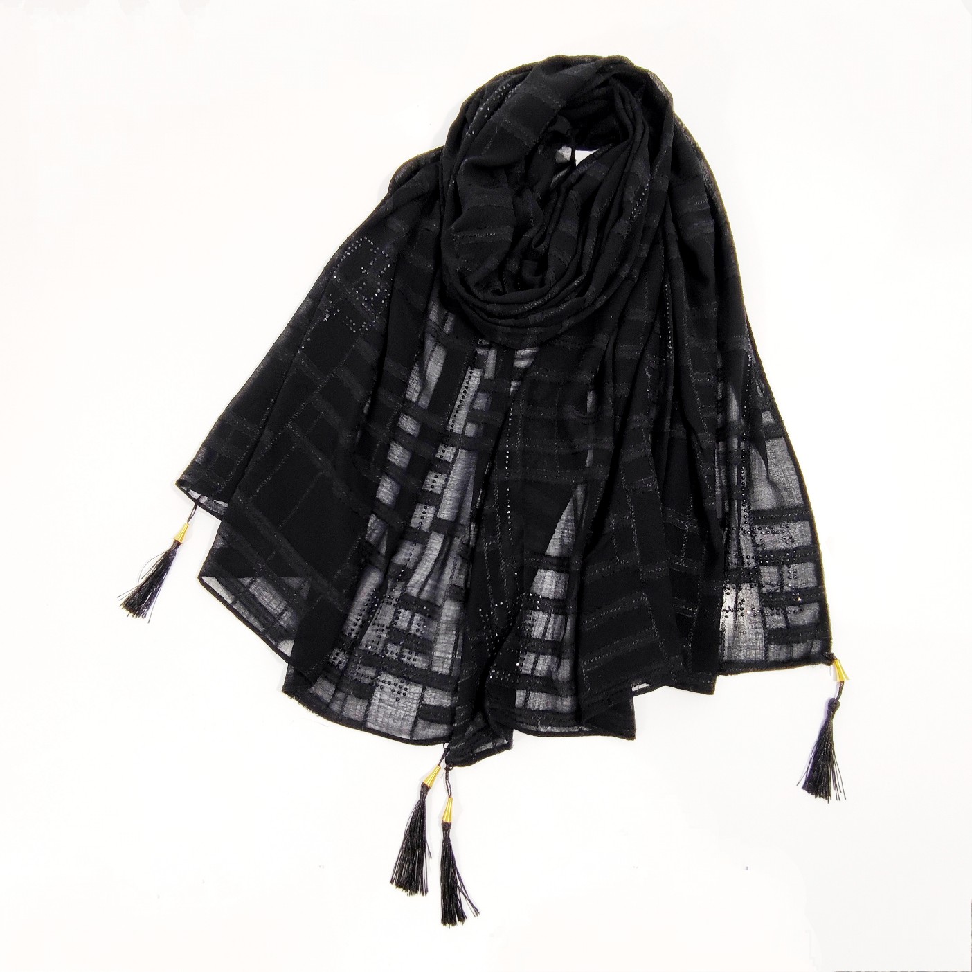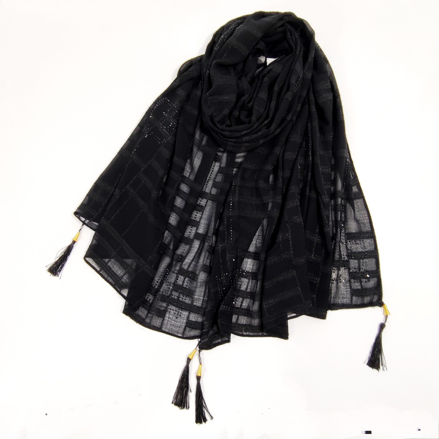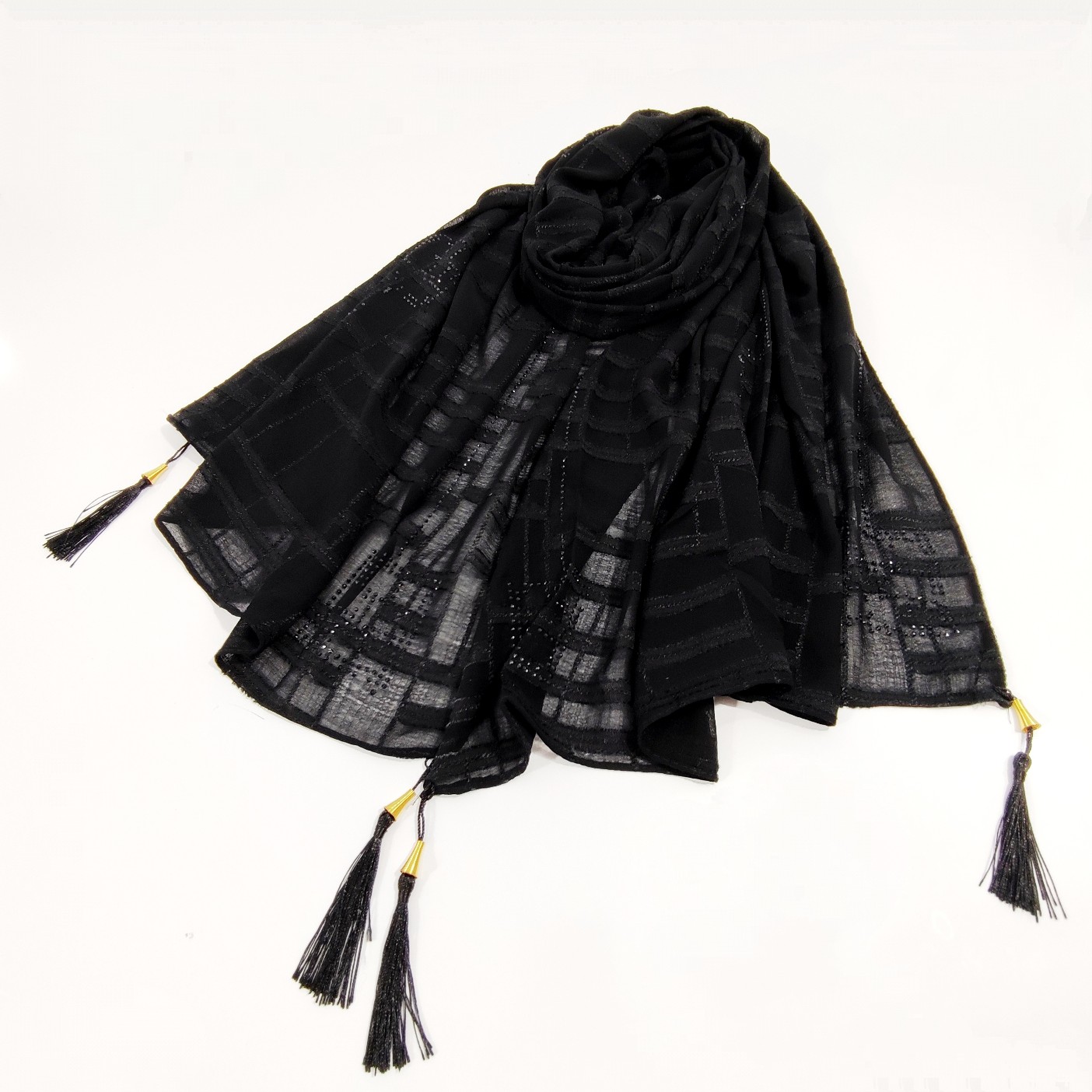 شال نخ حریر نگین دار ژورژت برند جیشون منگوله دار بسیار سبک و راحت و خنک که لیز نمیخورد و نگین هایش کنده نمیشه