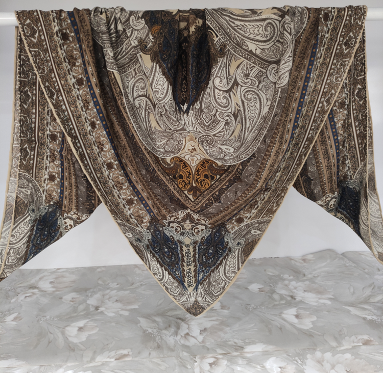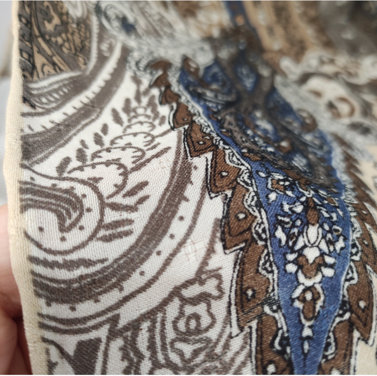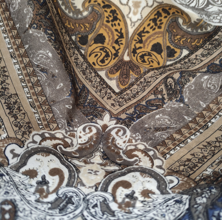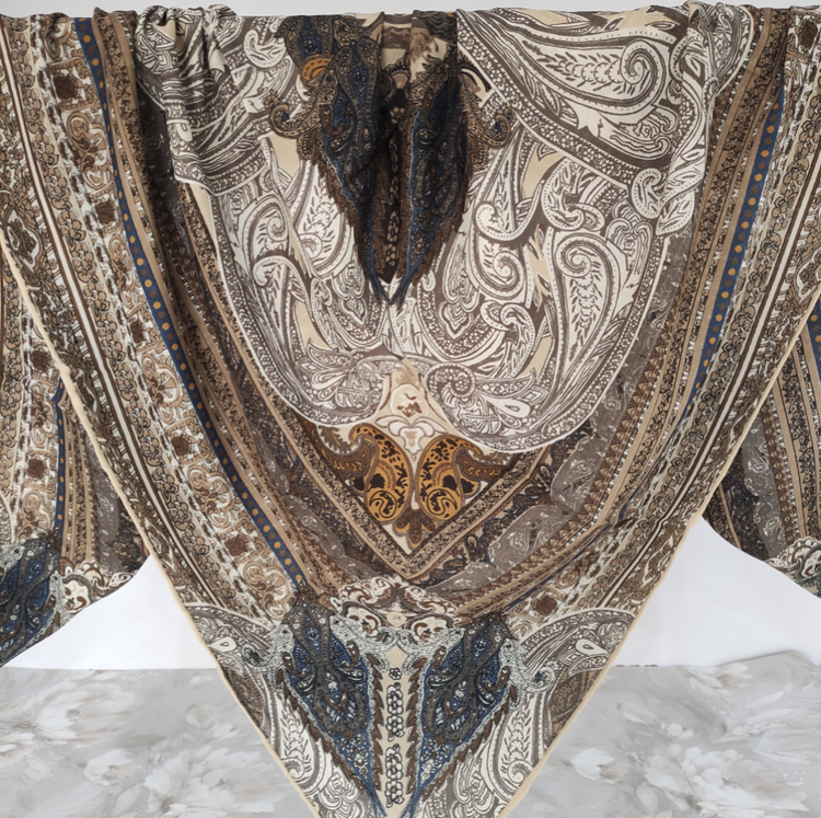 روسری بسیار زیبا طرح مخمل دور دستدوز با جنسش گارزا ژاکارد تابستانه بسیار لخت و سبک و راحت و خنک