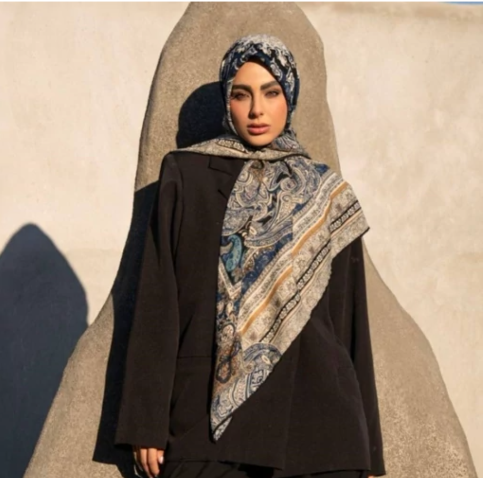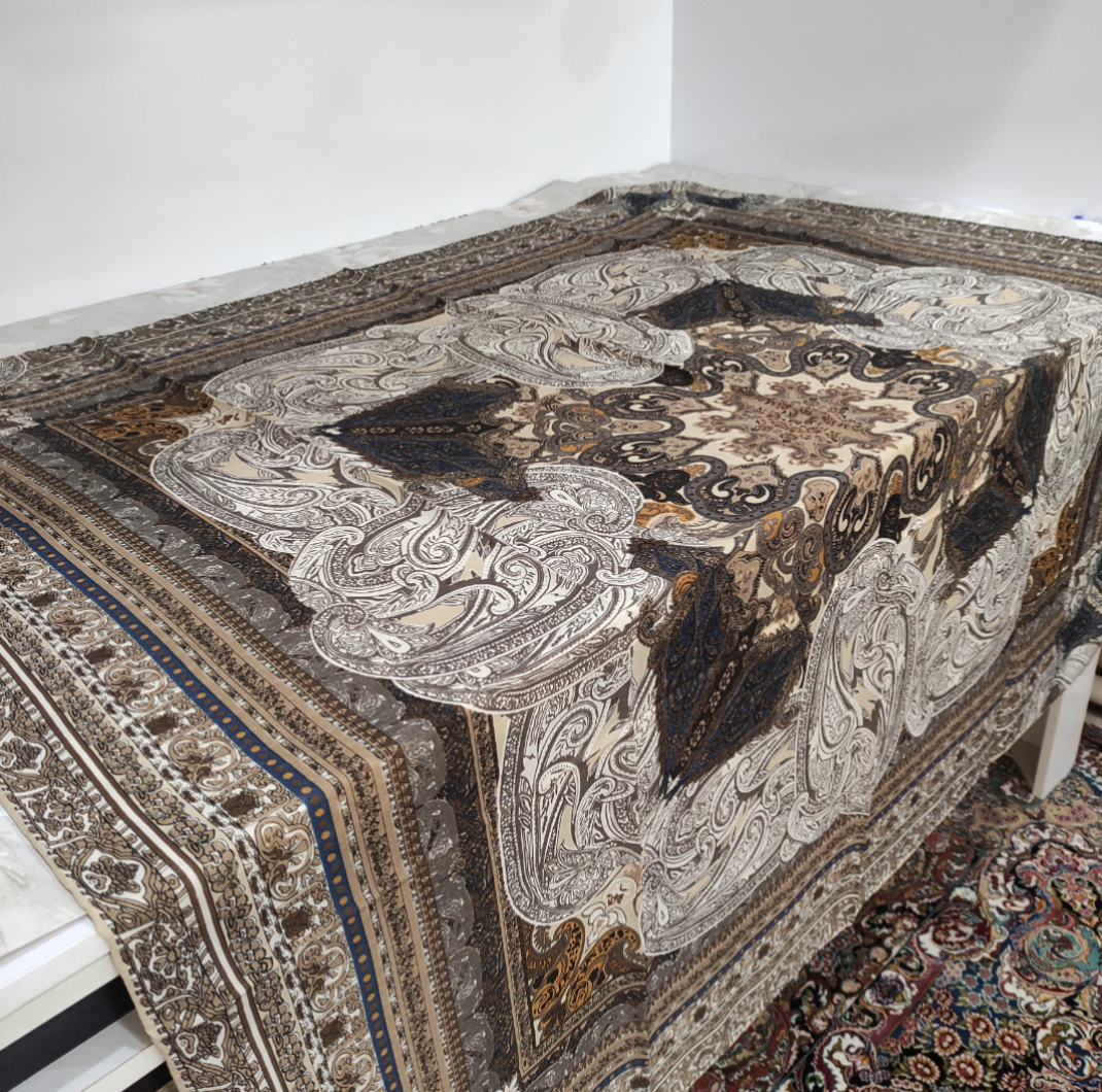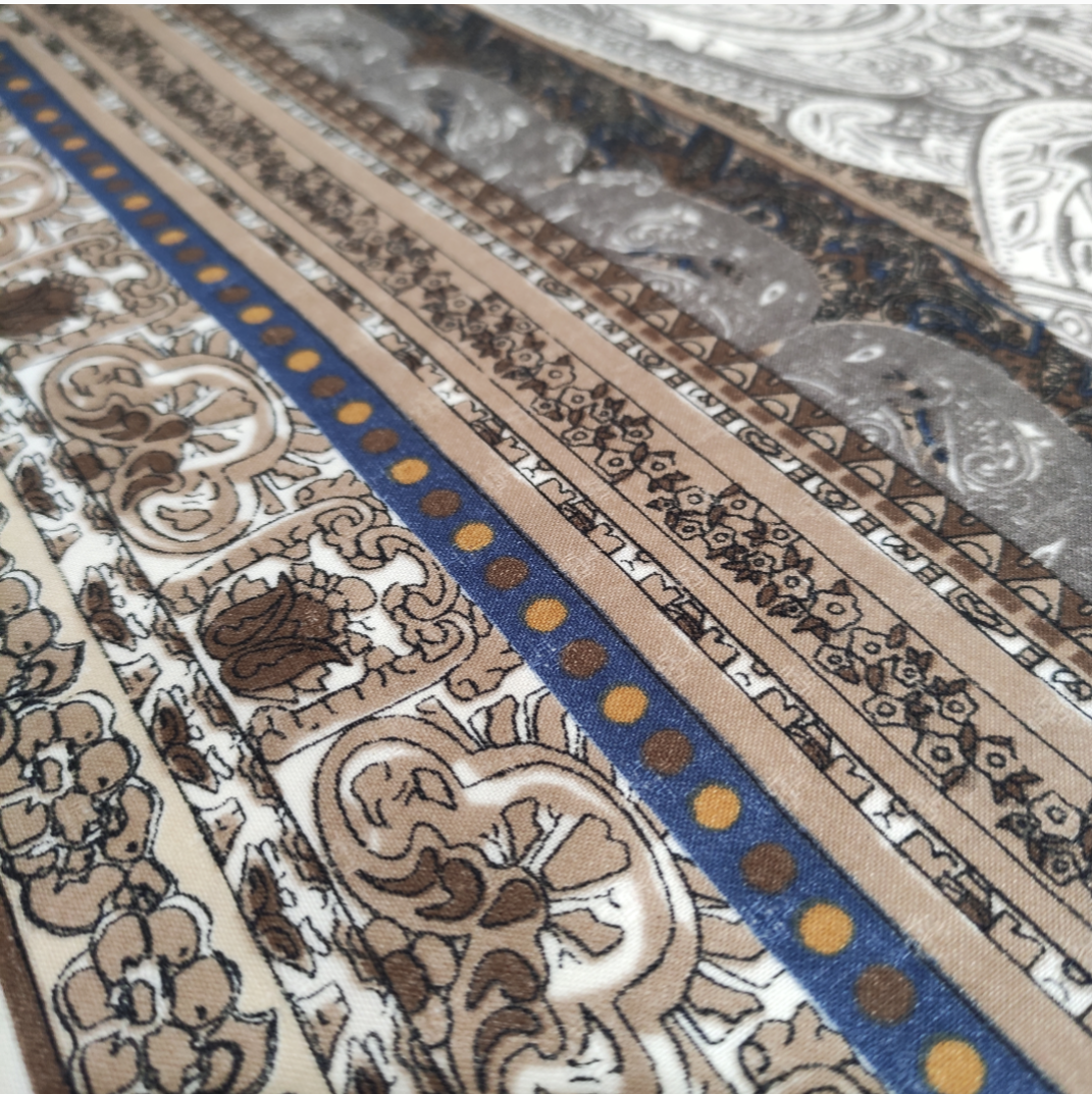 روسری بسیار زیبا طرح مخمل دور دستدوز با جنسش گارزا ژاکارد تابستانه بسیار لخت و سبک و راحت و خنک