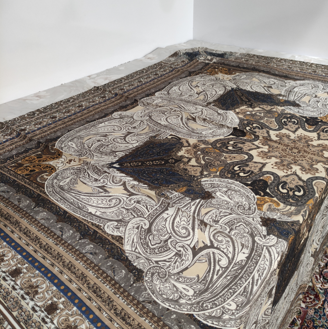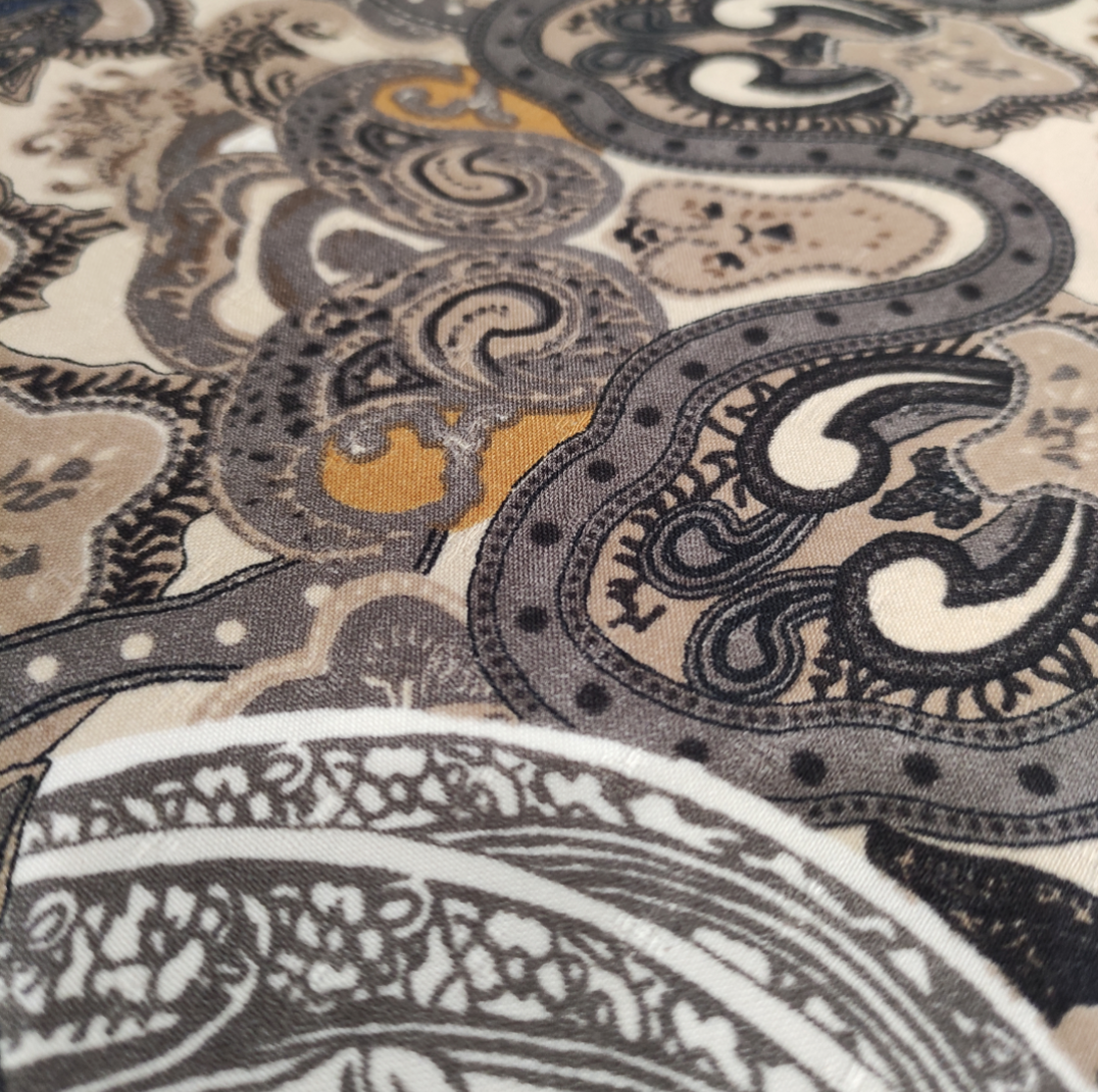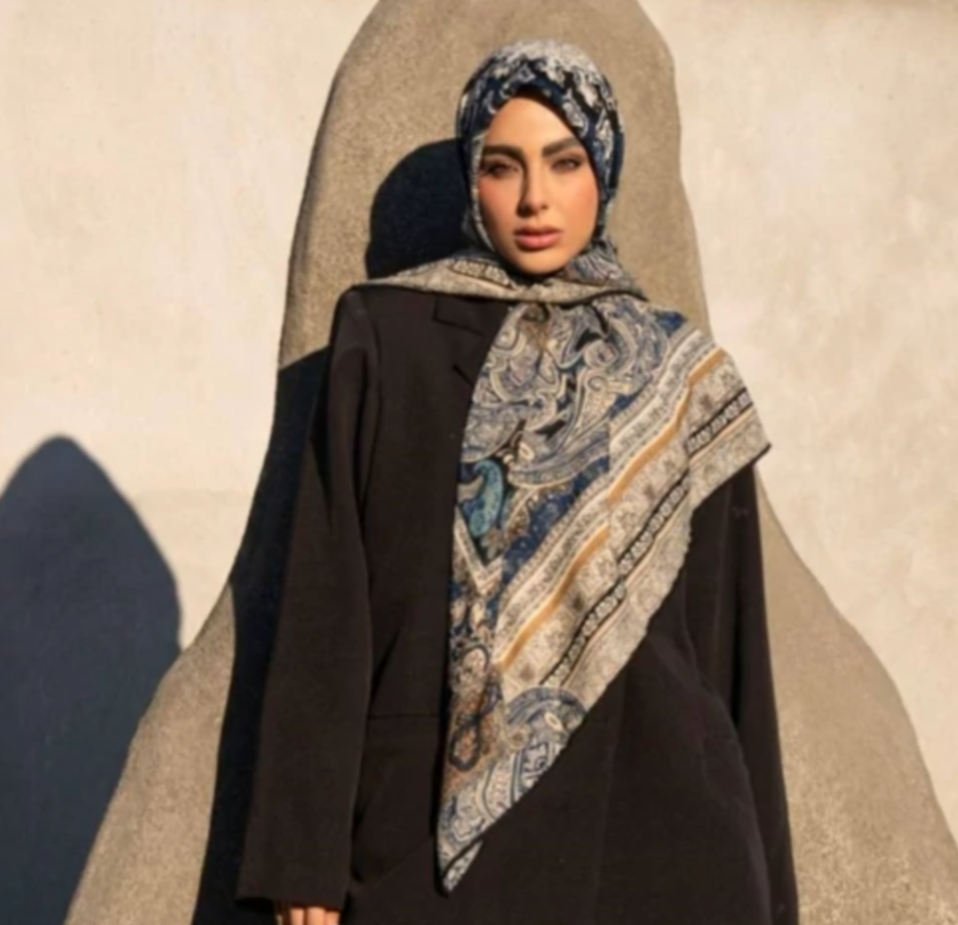 روسری بسیار زیبا طرح مخمل دور دستدوز با جنسش گارزا ژاکارد تابستانه بسیار لخت و سبک و راحت و خنک