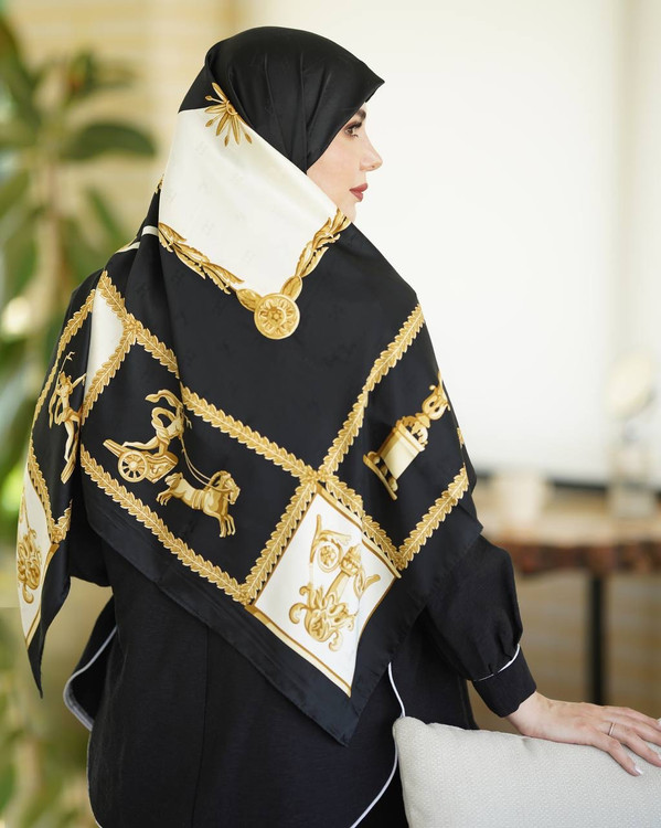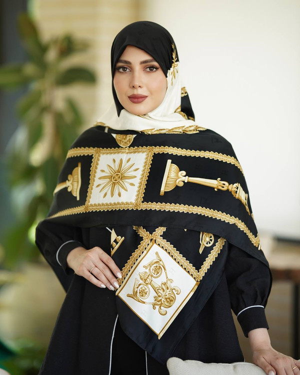 روسری نخ ابریشم ژاکارد وارداتی اورجینال برند قواره بزرگ دور دستدوز یک روسری مجلسی مناسب چهار فصل برای دوستانی که دنبال روسری شیک و ترند اصل هستن یک روسری فوقالعاده شیک