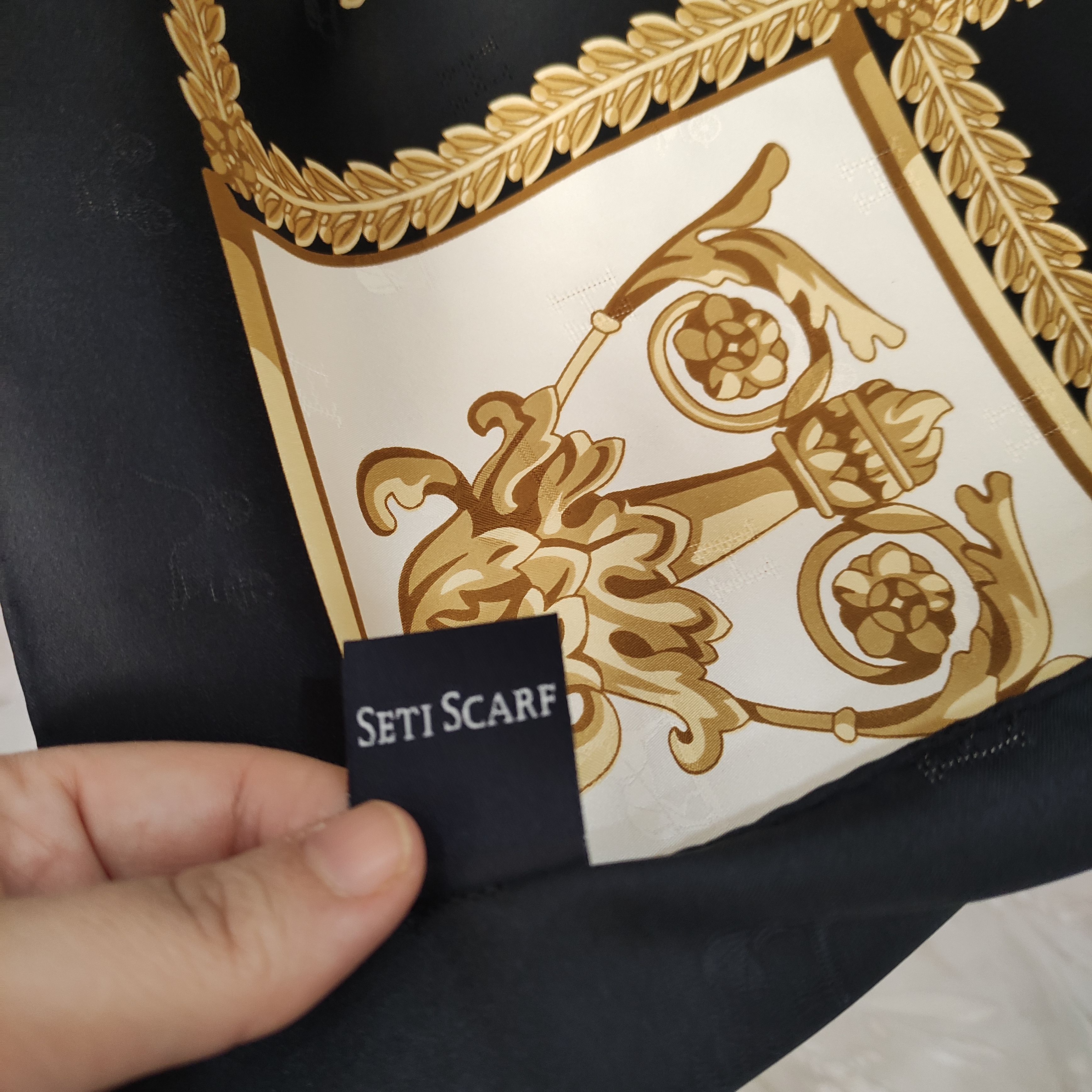 روسری نخ ابریشم ژاکارد وارداتی اورجینال برند قواره بزرگ دور دستدوز یک روسری مجلسی مناسب چهار فصل برای دوستانی که دنبال روسری شیک و ترند اصل هستن یک روسری فوقالعاده شیک