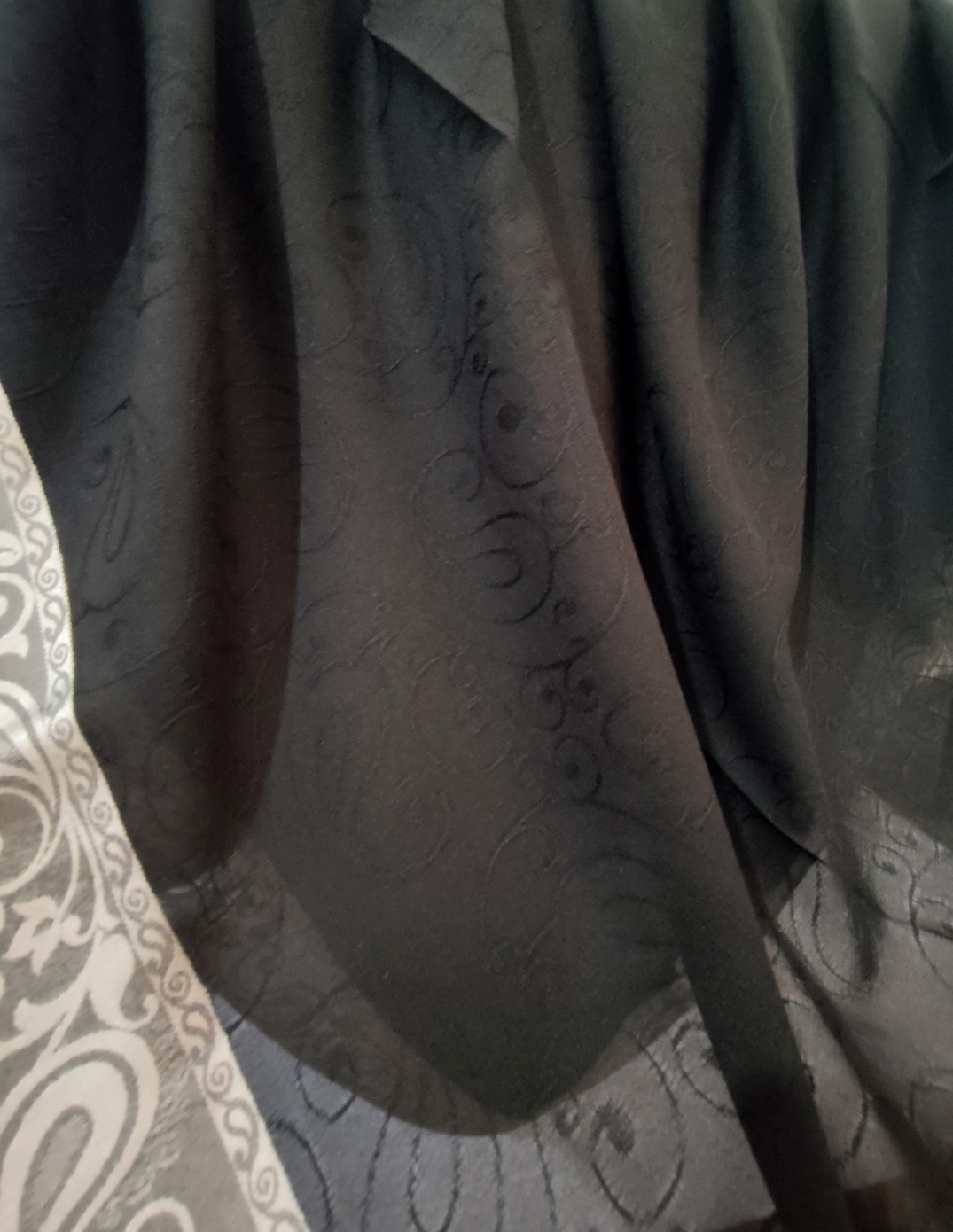 روسری مشکی نخ حریر دور طلایی حریر دووره ترک با قواره ۱۲۰ دور دوخت بسیار سبک مناسب تابستان در قسمت ساده مشکی روسری طرح های ریز برجسته بافت شده است