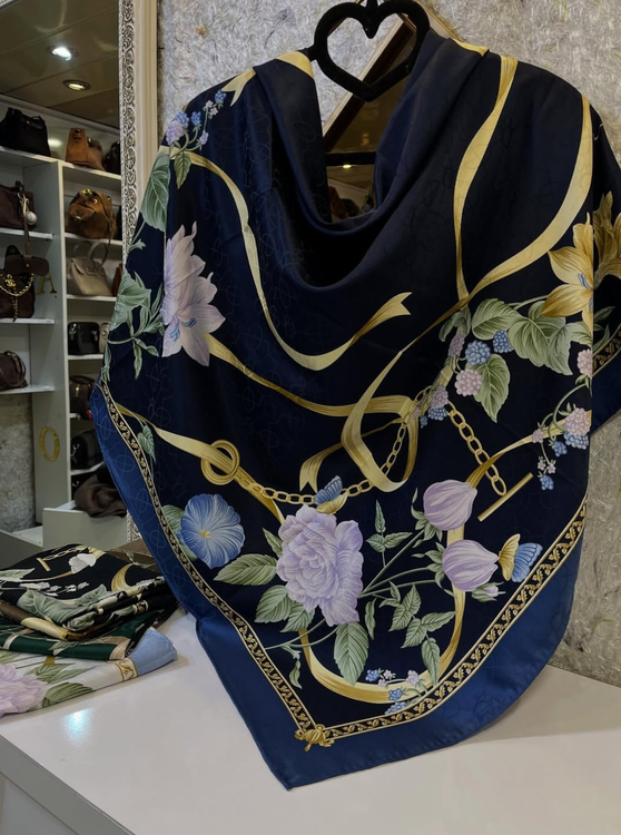 روسری نخ ابریشم ژاکارد وارداتی اورجینال قواره ۱۲۰ دور دستدوز یک روسری مجلسی مناسب چهار فصل برای دوستانی که دنبال روسری شیک و ترند اصل هستن یک روسری فوقالعاده شیک