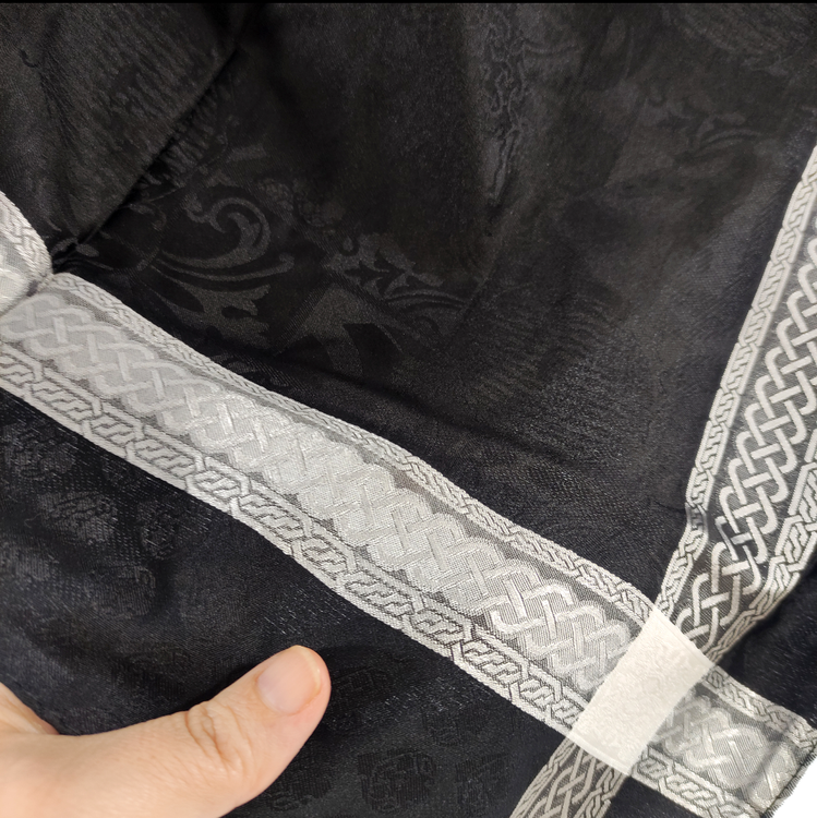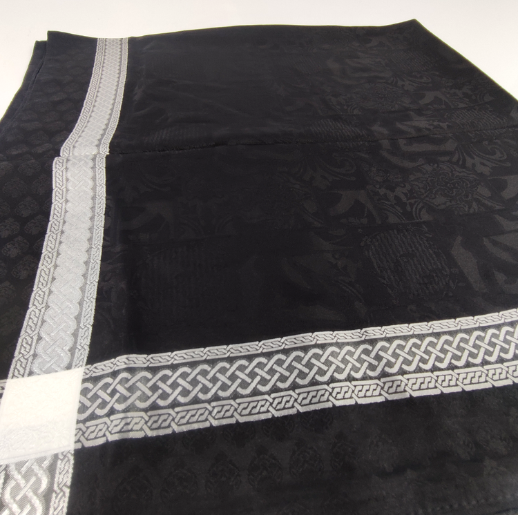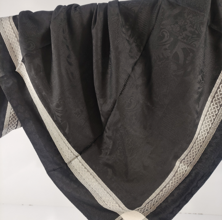 روسری مشکی نخ ژاکارد وارداتی ترک دور دوخت با قواره ۱۰۰ و طرح دور قتب نقره ای اصلأ لیز نیست چروک و دون دون نمیشه