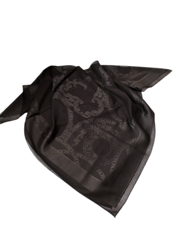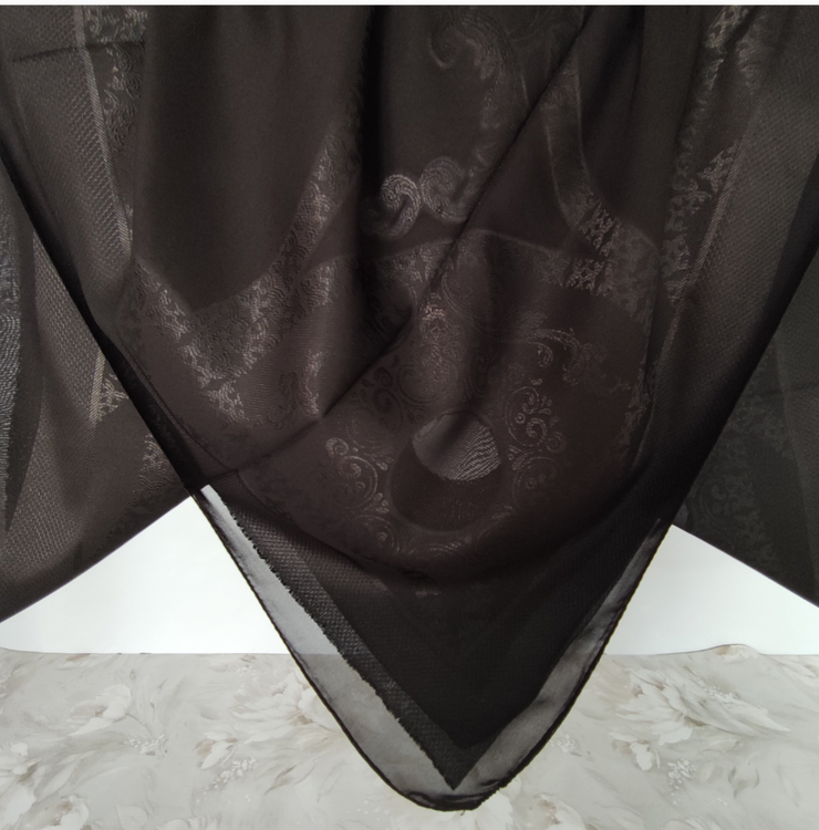 روسری مشکی نخ حریر برجسته دووره ترک قواره ۱۰۵