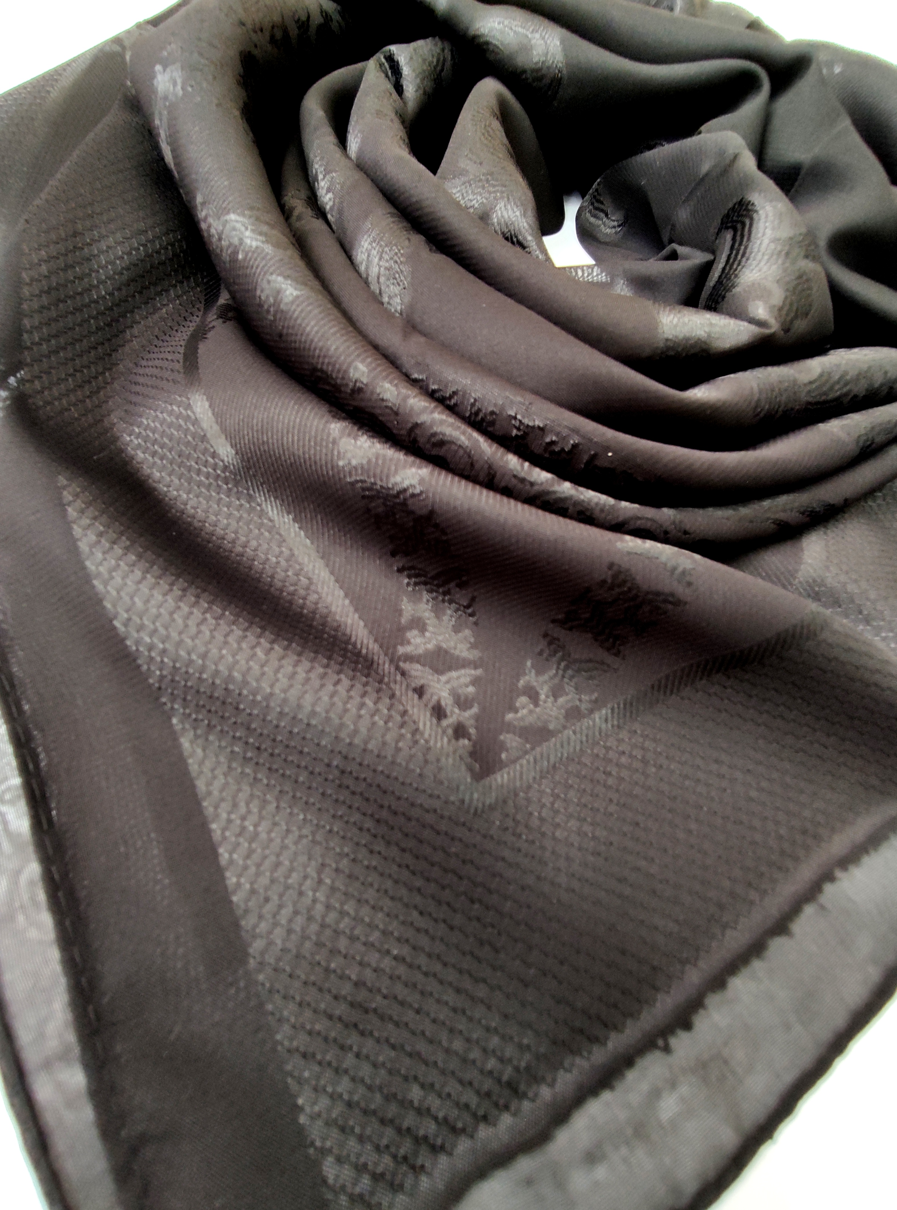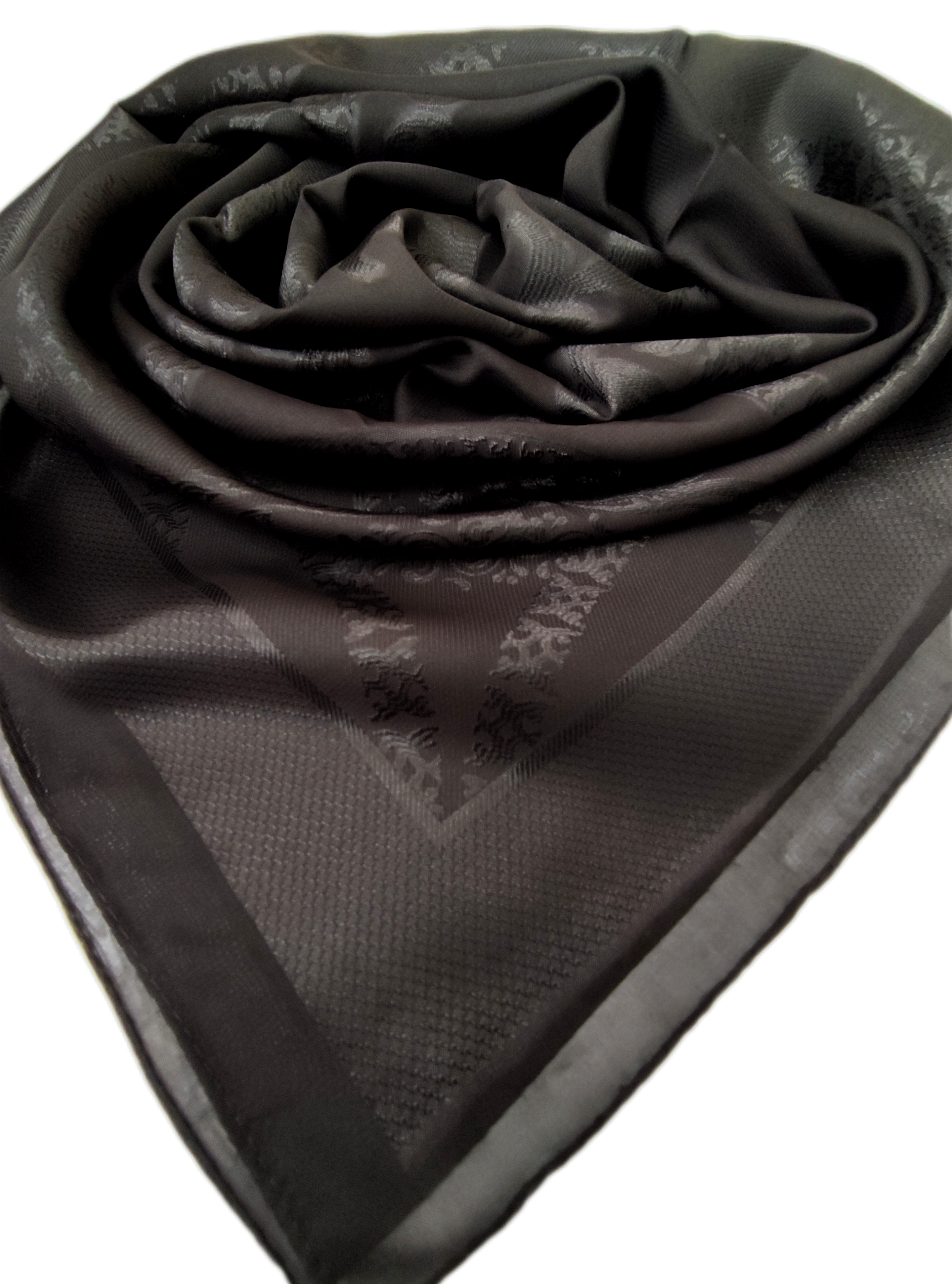 روسری مشکی نخ حریر برجسته دووره ترک قواره ۱۰۵