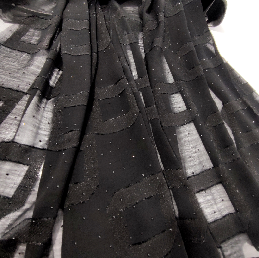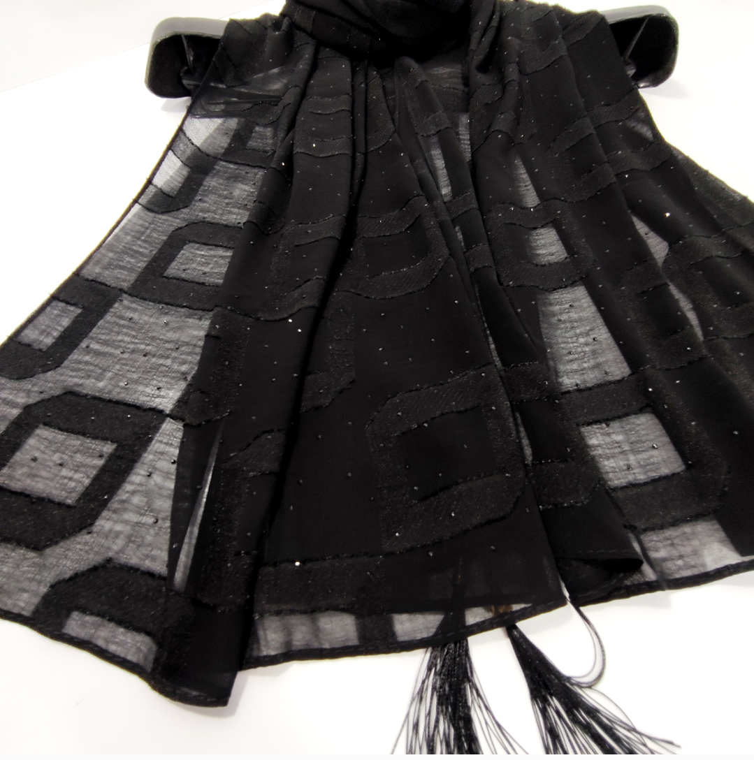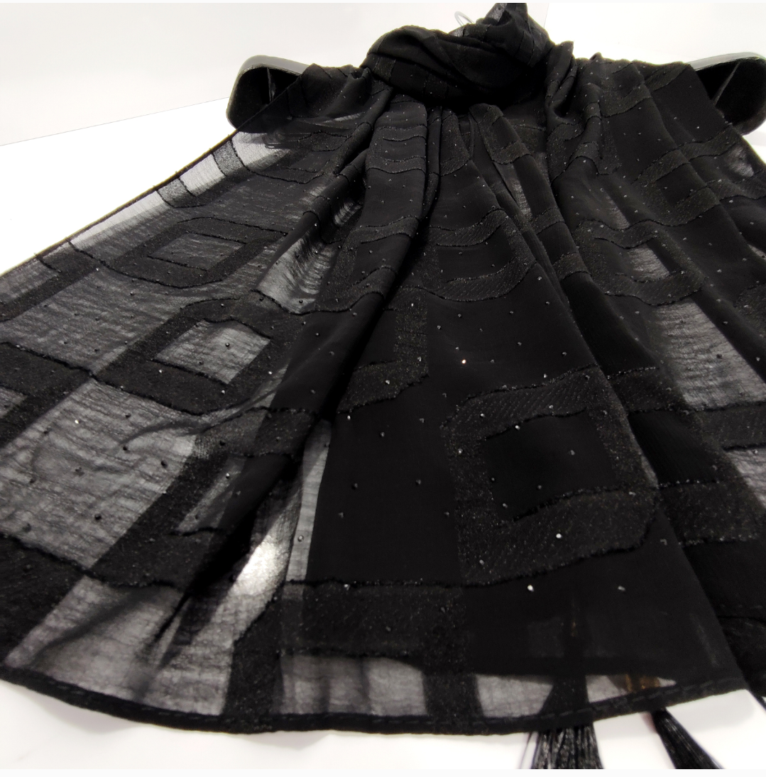 شال مشکی مجلسی نخ حریر ژورژت وارداتی