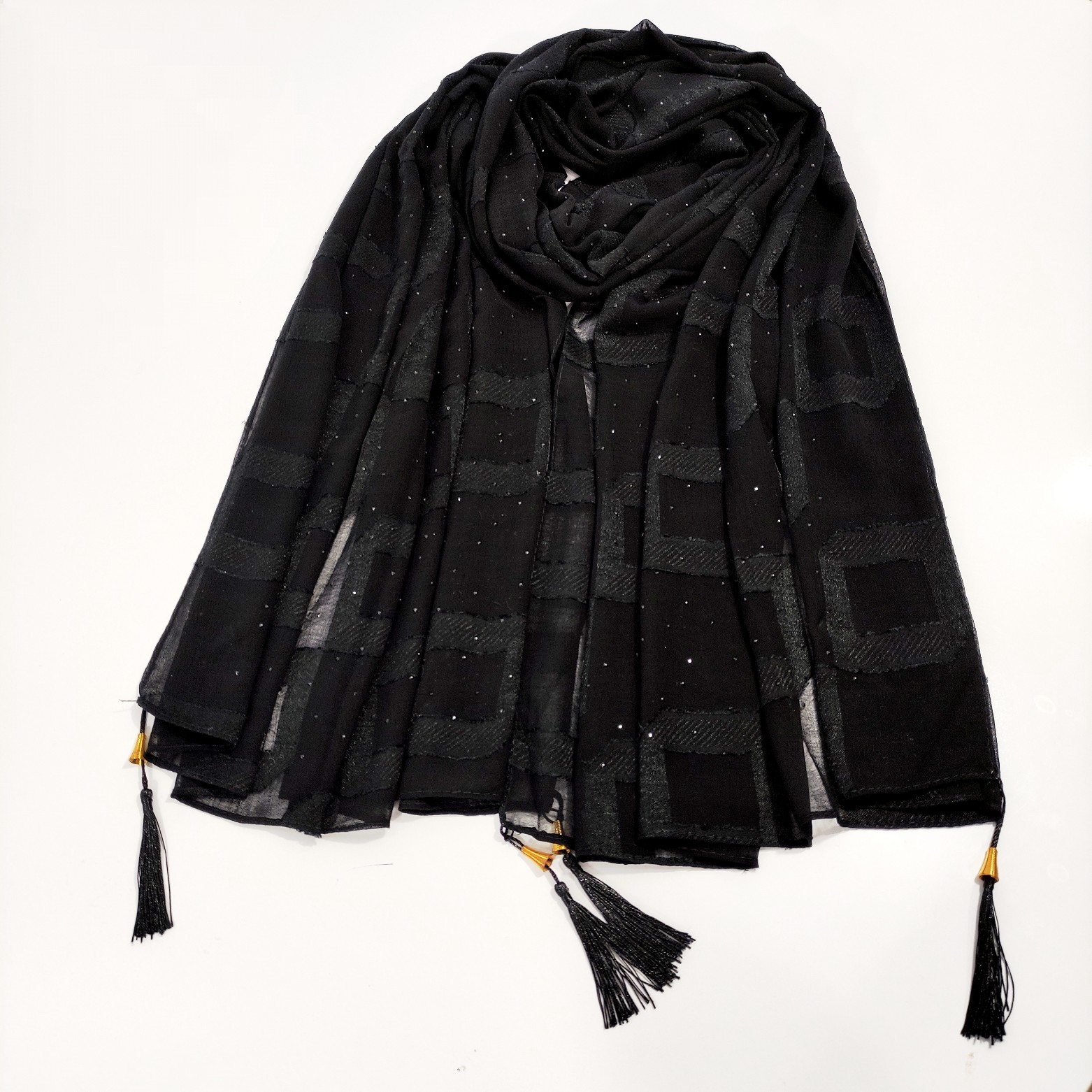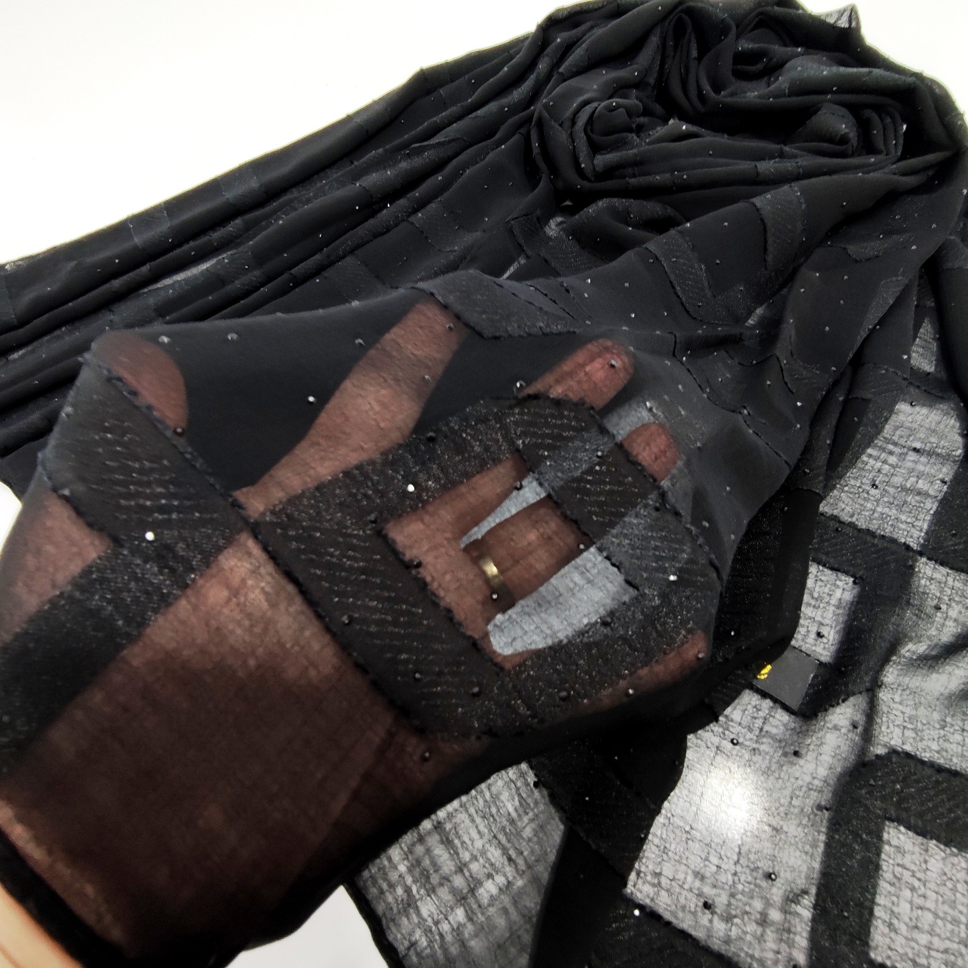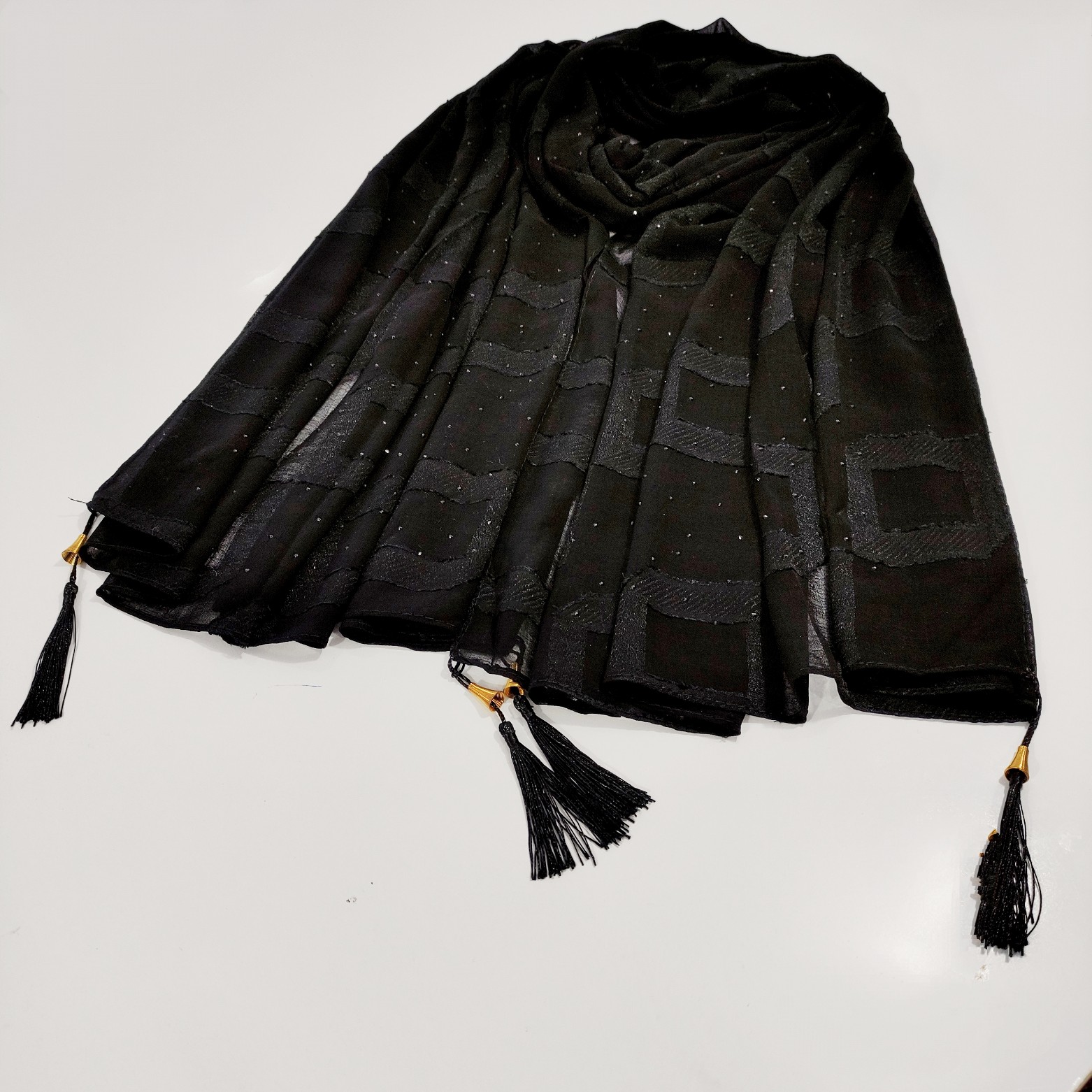 شال مشکی مجلسی نخ حریر ژورژت وارداتی
