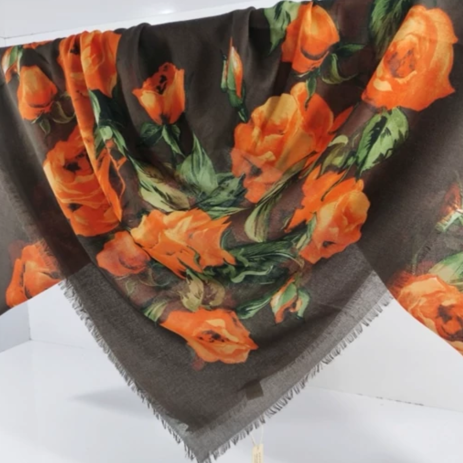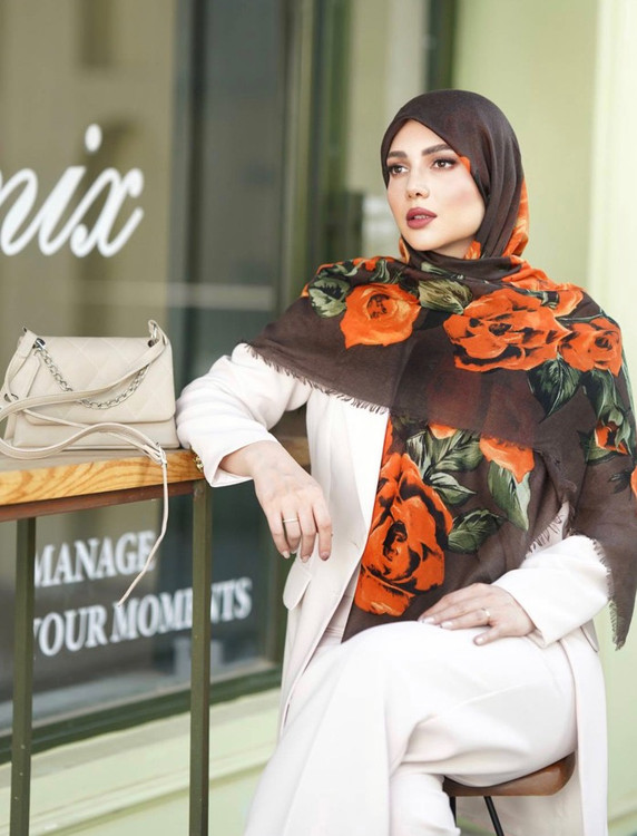 یک روسری وارداتی قواره دار دور ریش بسیار سبک و لطیف با جنس نخی وارداتی اصلأ لیز نیست و چروک نمیشه ایستایی عالی روی سر دارد تابستانه و خنک