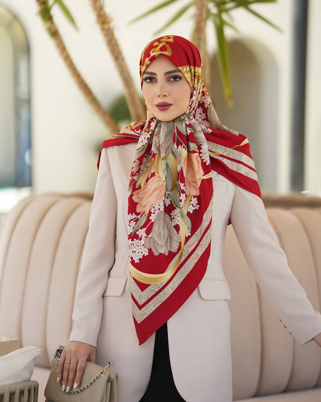 روسری یلدایی ابریشم ژاکارد وارداتی اورجینال برند قواره بزرگ دور دستدوز