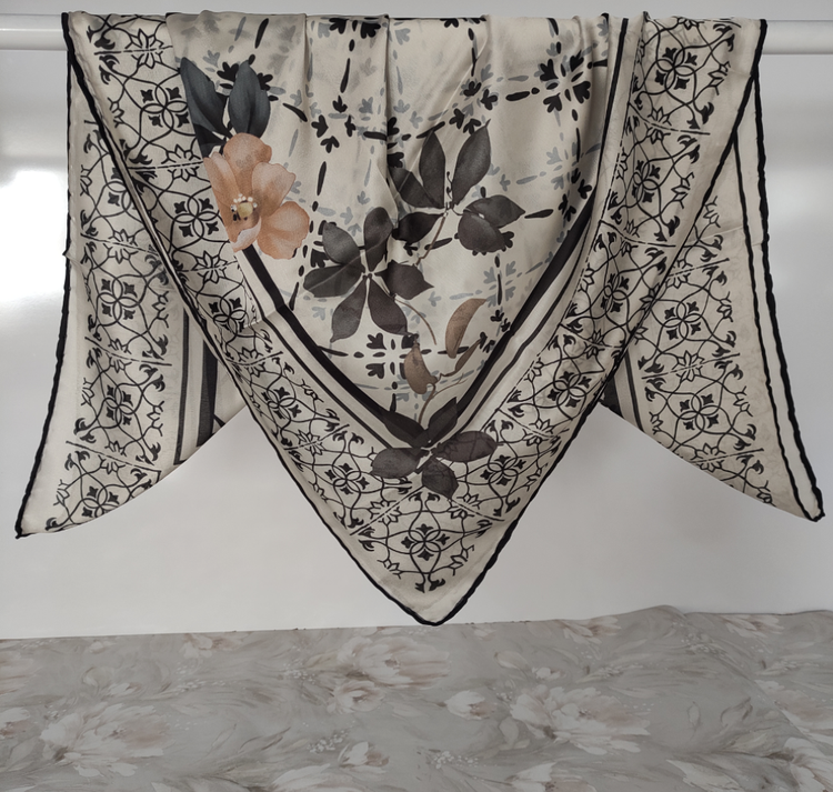 روسری ابریشم مام قواره ۱۱۰ دور دستدوز