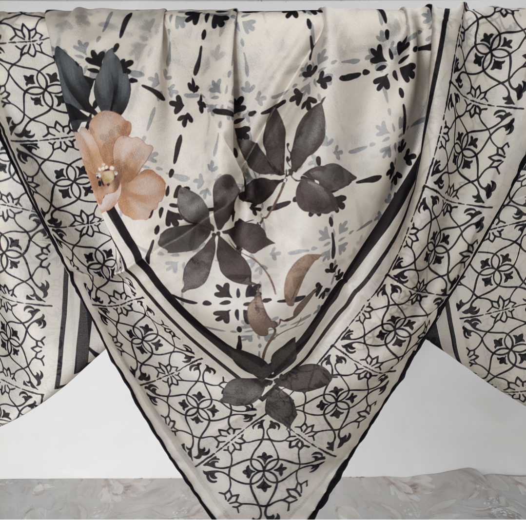 روسری ابریشم مام قواره ۱۱۰ دور دستدوز