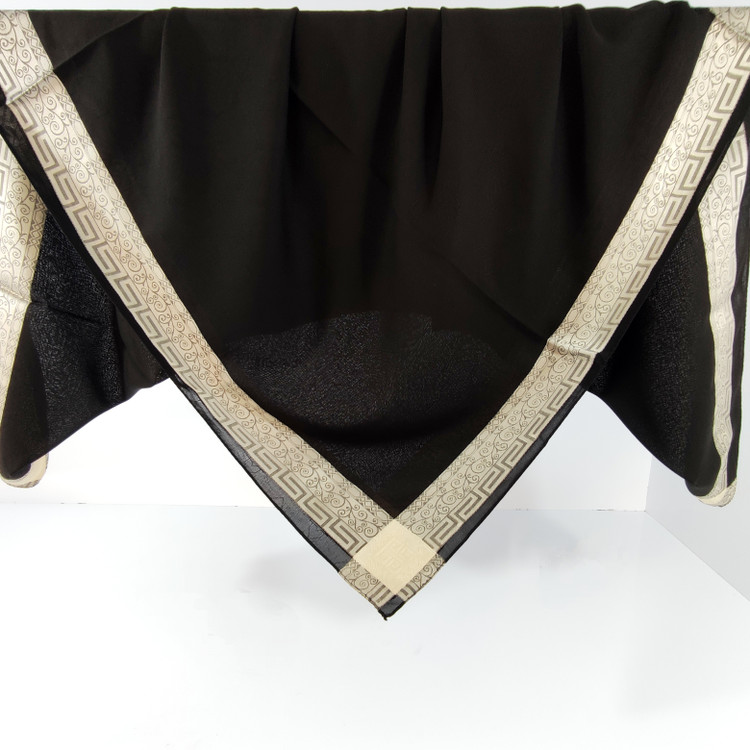 روسری مشکی نخ حریر دور طلایی دووره ترک قواره ۱۲۰