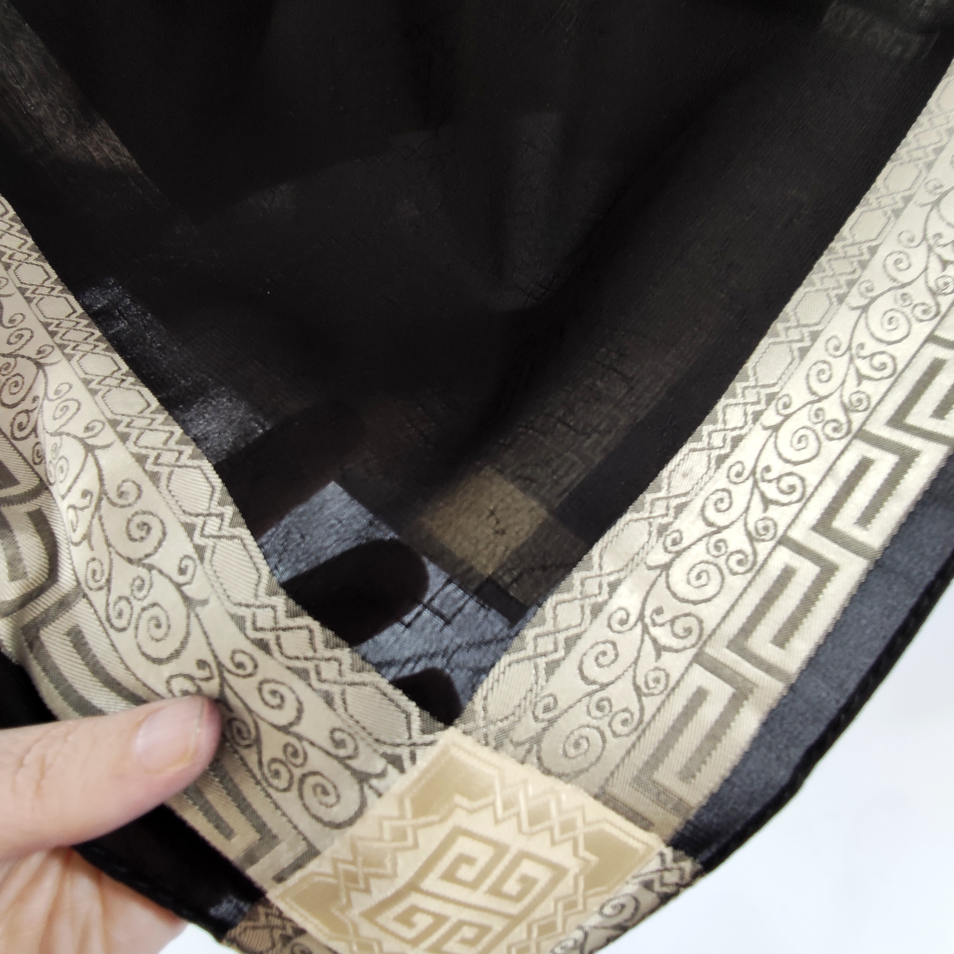 روسری مشکی نخ حریر دور طلایی دووره ترک قواره ۱۲۰