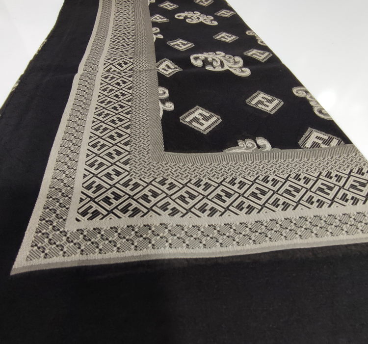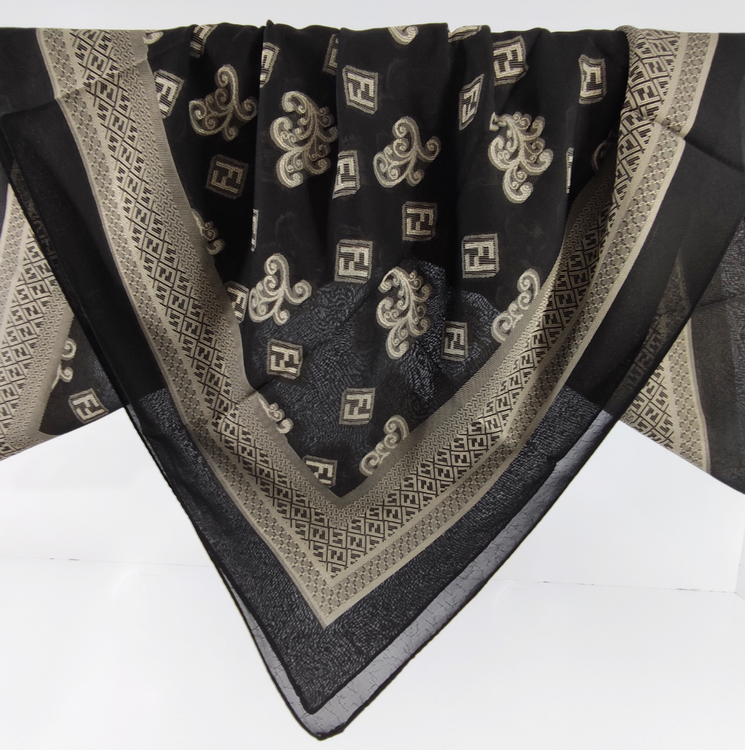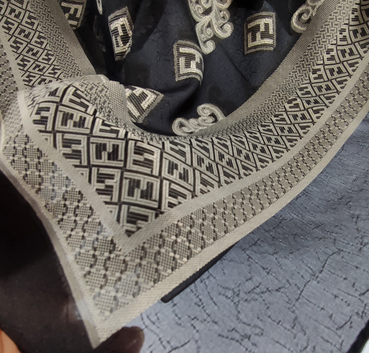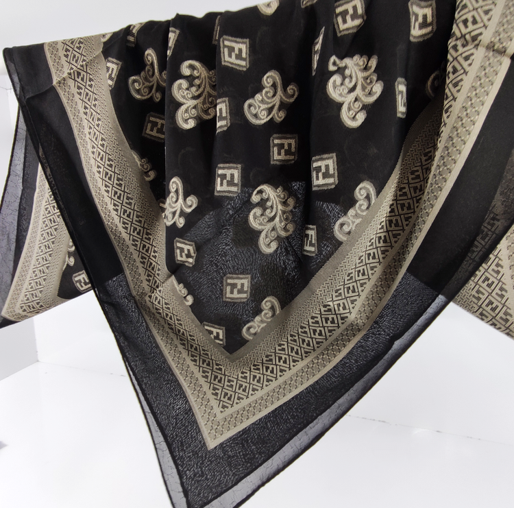 این روسری مناسب بهار و تابستان با رنگ مشکی سیر با طرح های طلا کوب روشن برجسته لیز نیست و چروک و دون دون نمیشه