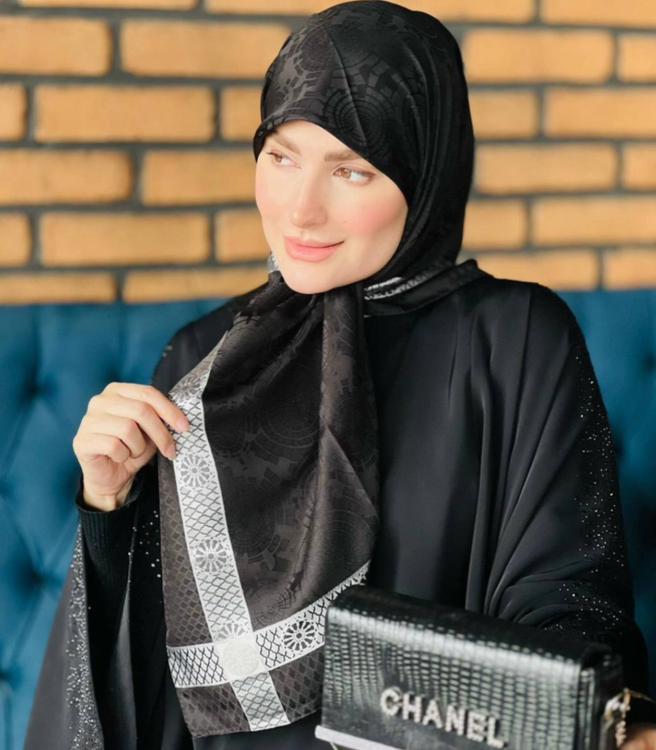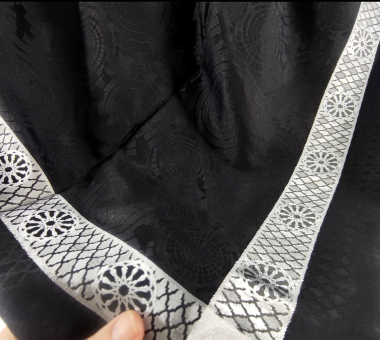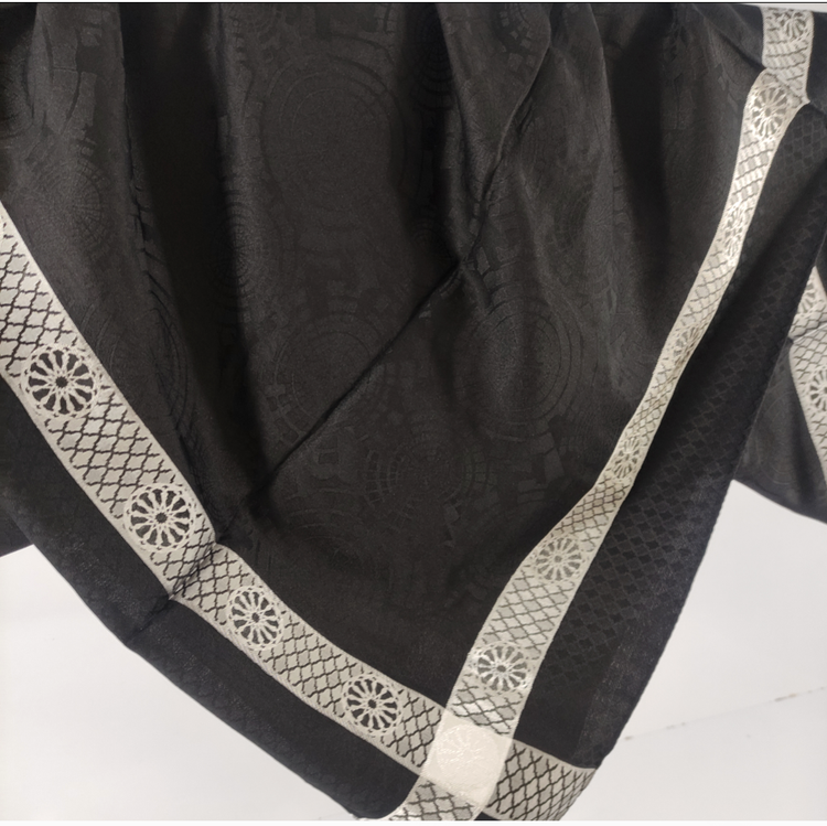 روسری مشکی ژاکارد نخ ترک دور قاب نقره ای قواره ۱۰۰ دور دوخت