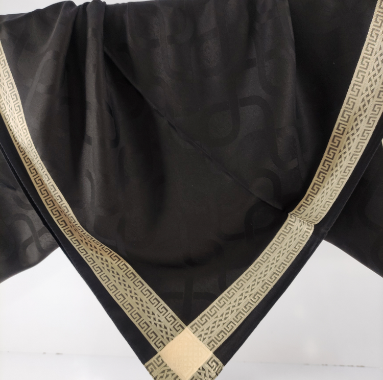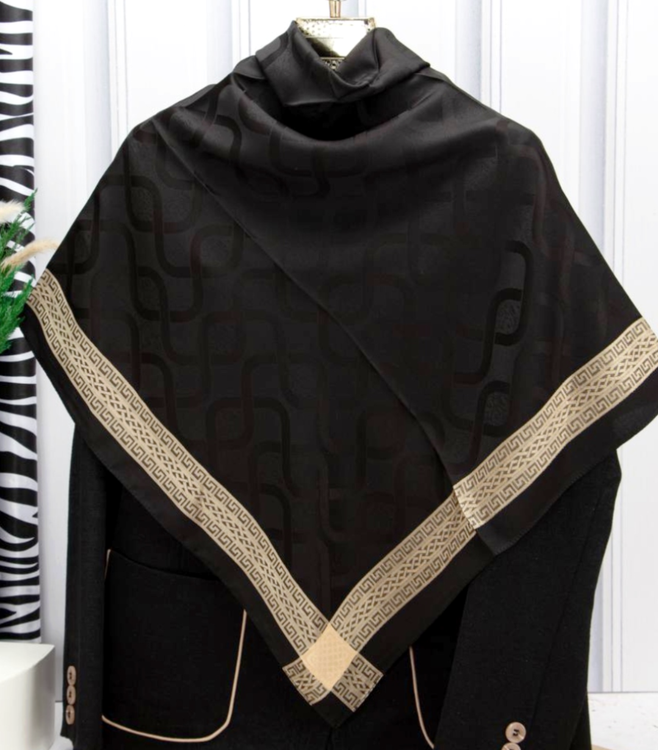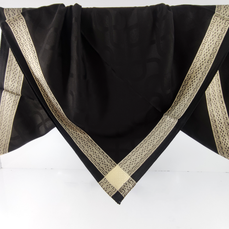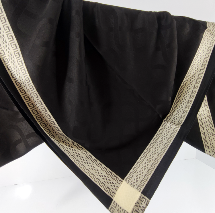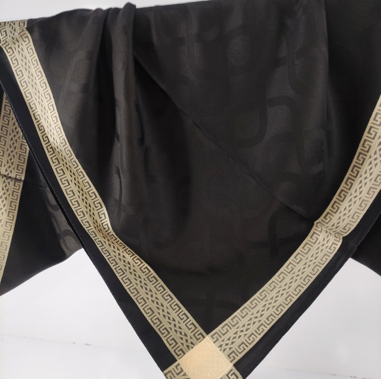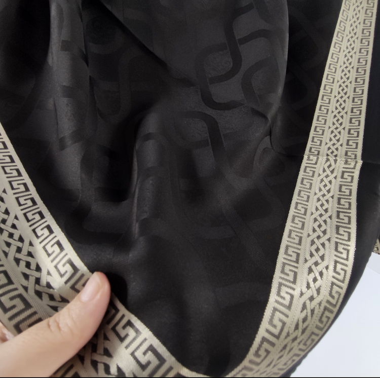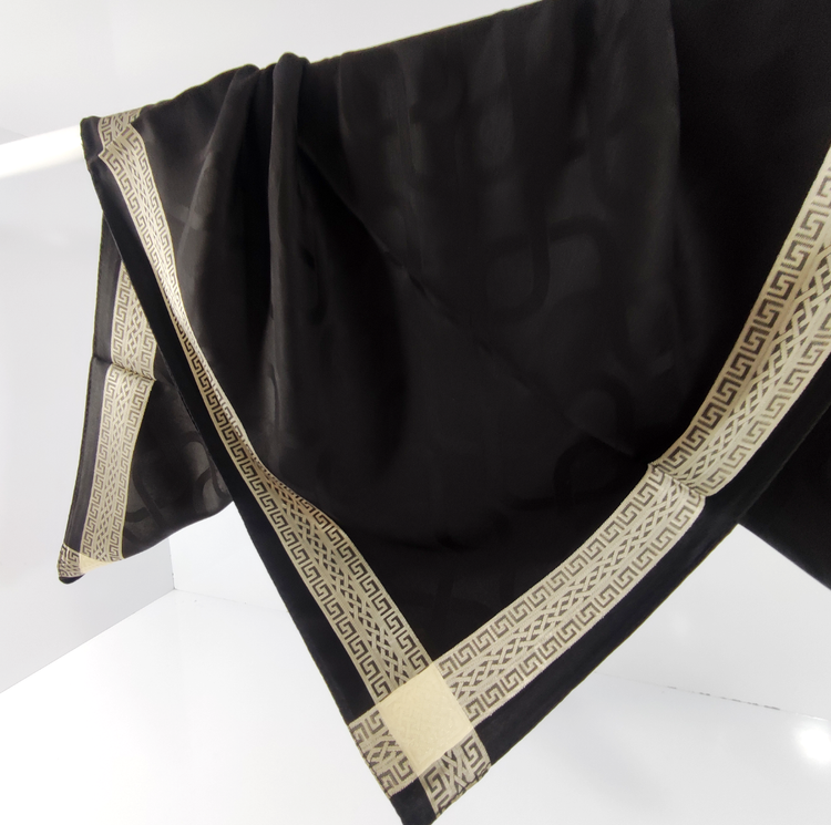 روسری مشکی نخ ژاکارد وارداتی ترک دور دوخت با قواره ۱۰۰ و طرح دور قتب نقره ای اصلأ لیز نیست چروک و دون دون نمیشه