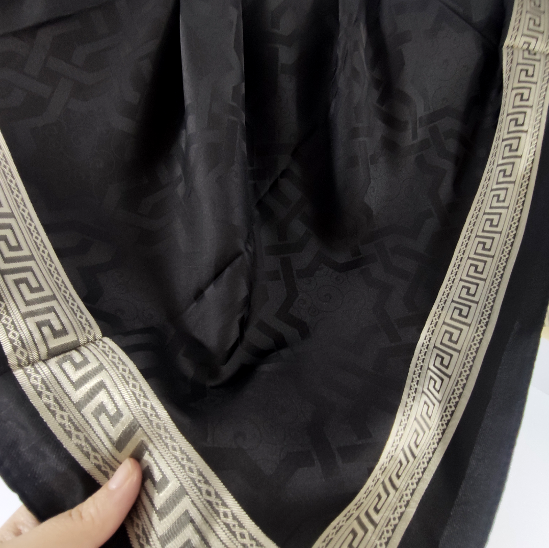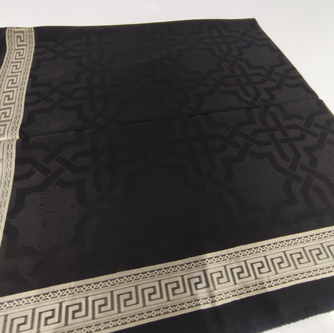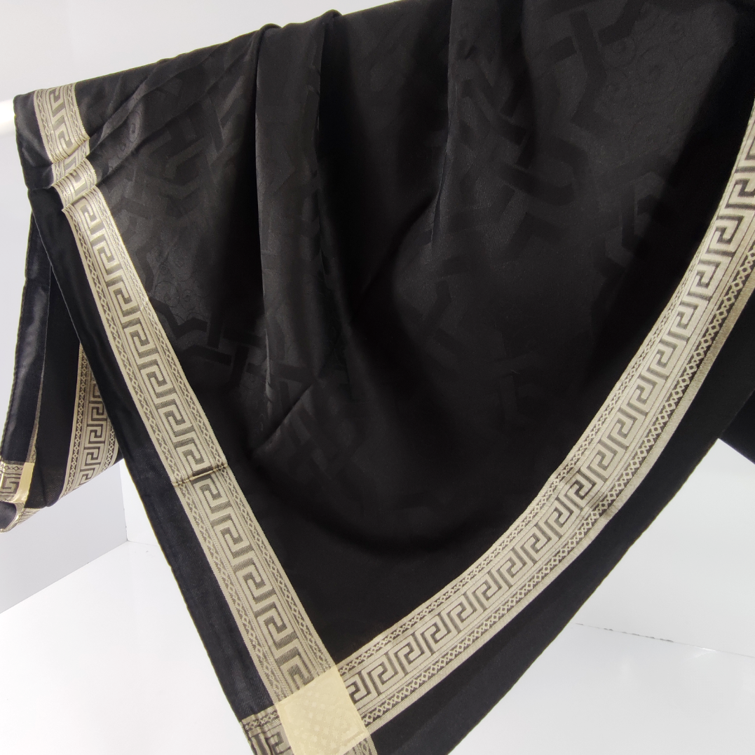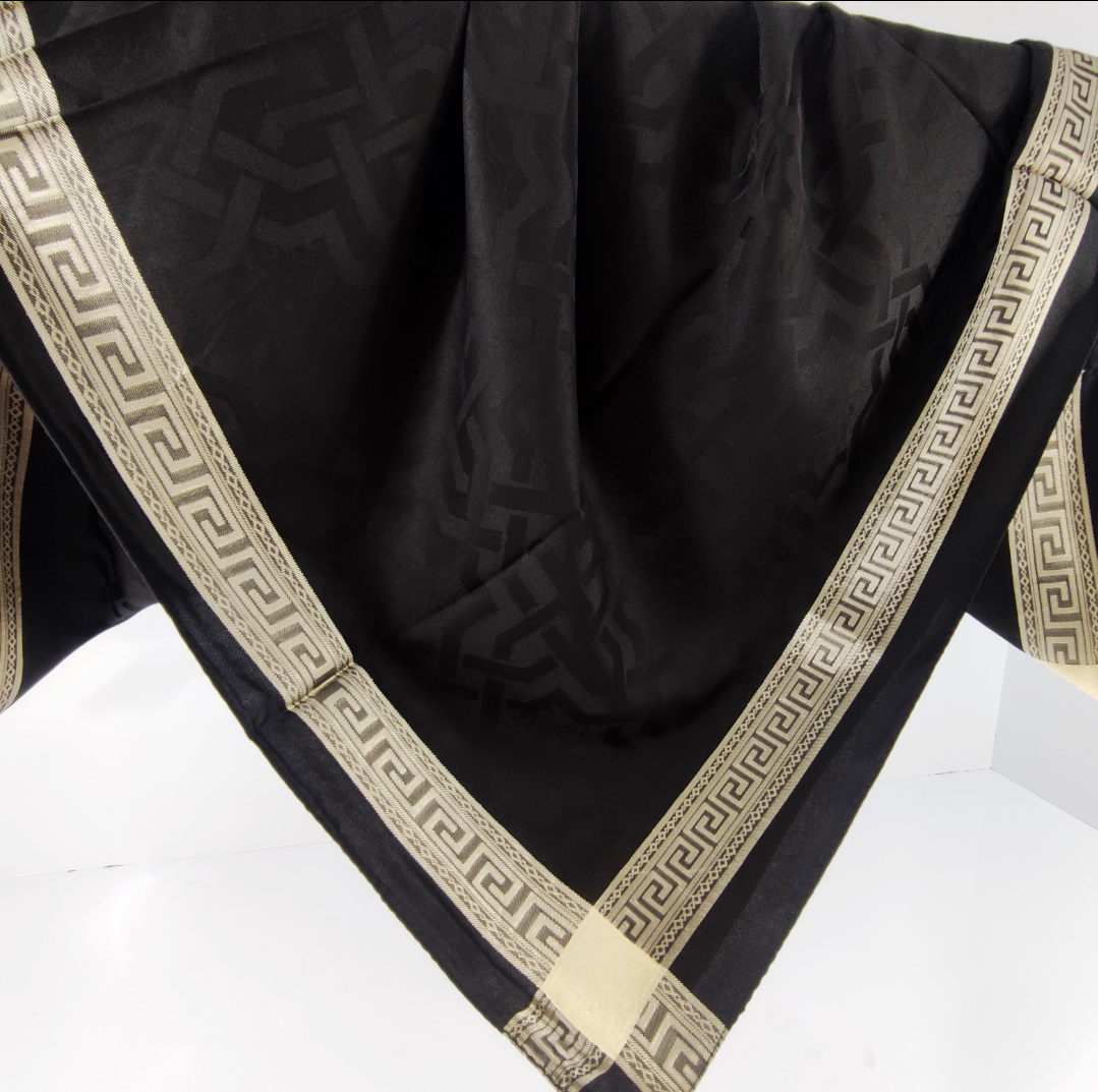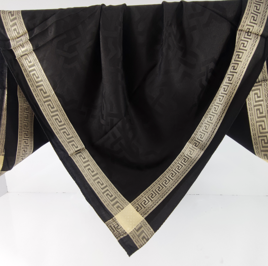 روسری مشکی نخ ژاکارد وارداتی ترک دور قاب طلایی قواره ۱۰۵ دور دوخت
